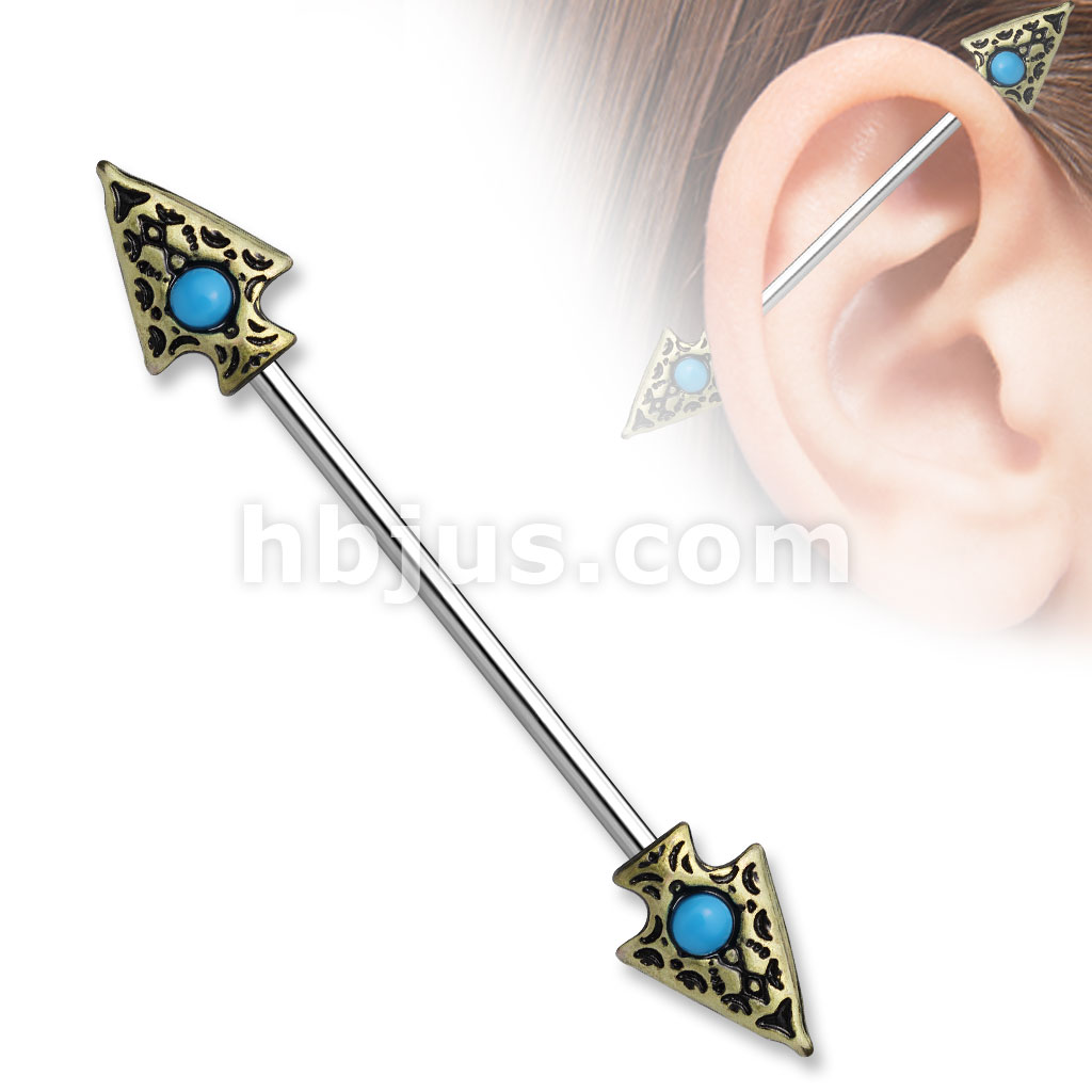 Turquoise set Tribal Spear on Both sides 316L surgical Steel Industrial Barbells