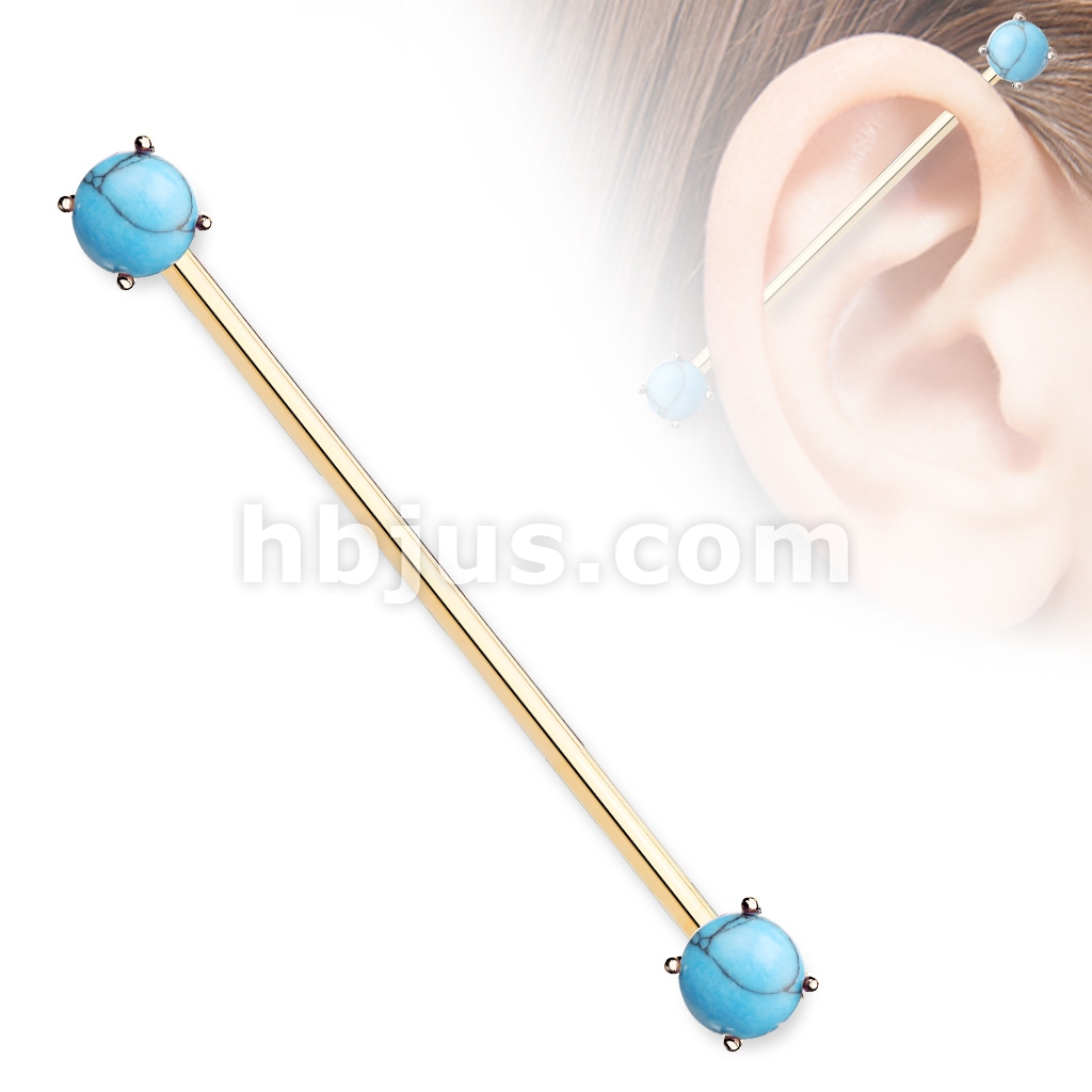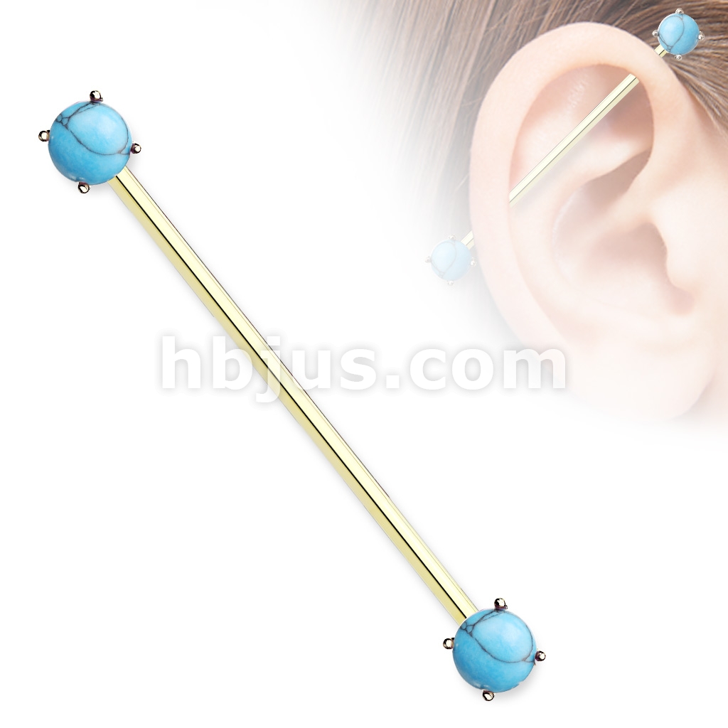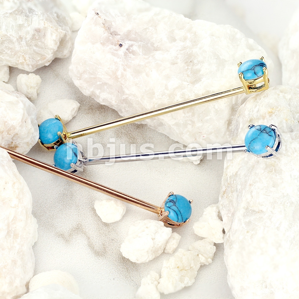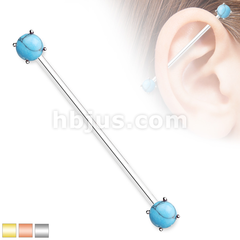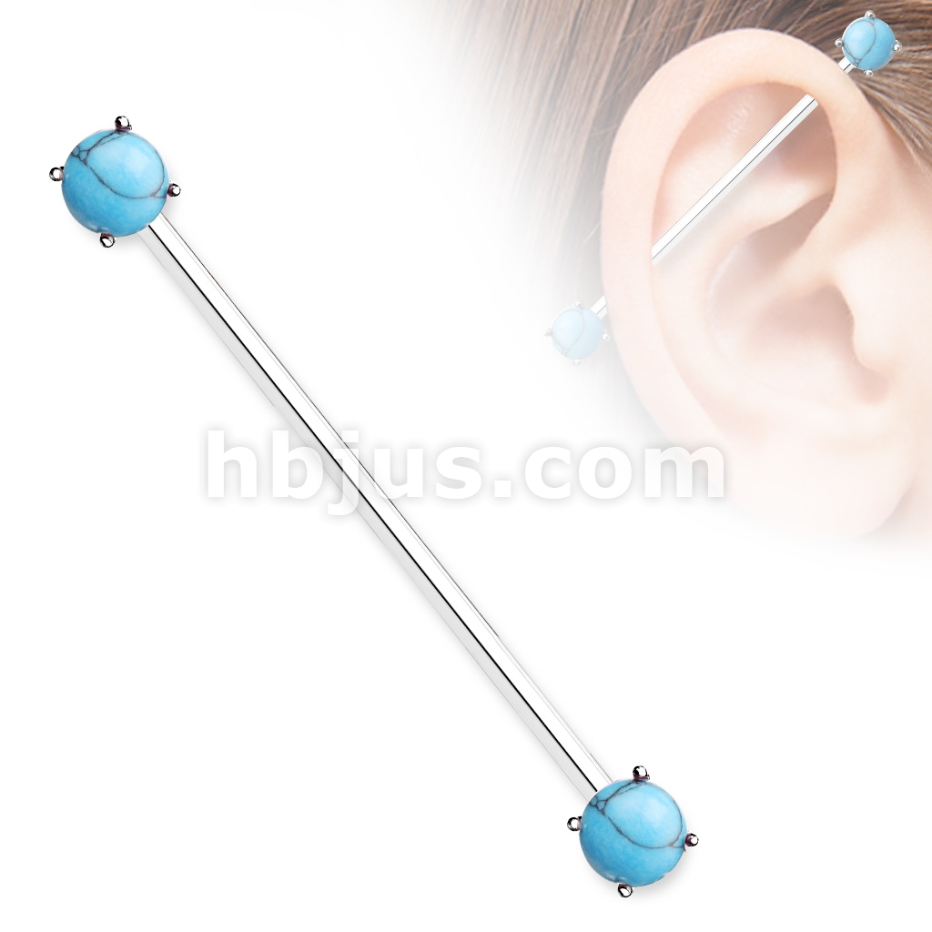 Round Turquoise Prong Set Ends 316L Surgical Steel Industrial Barbells