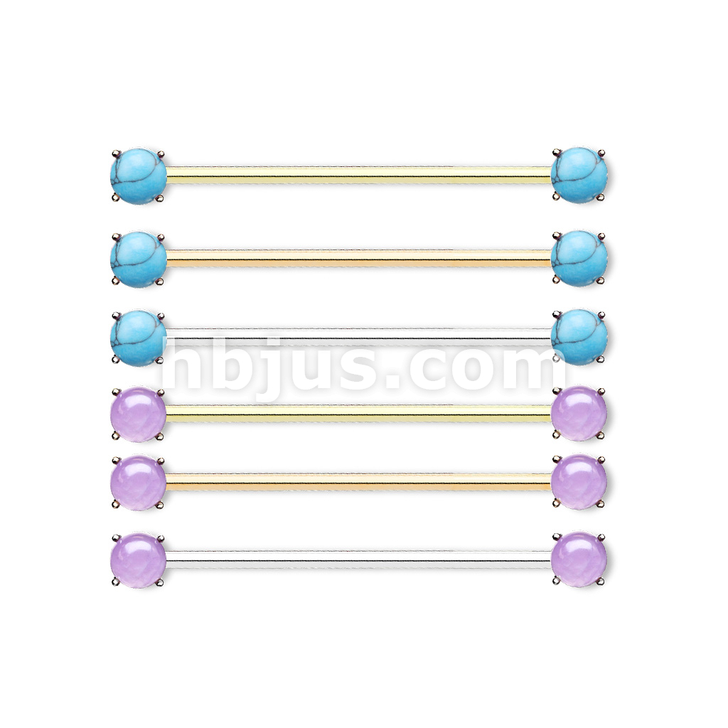 36 Pcs 7mm Round Turquoise and Amethyst Stone Prong Set Ends 316L Surgical Steel Industrial Barbells Bulk Pack (6 pcs x 6 colors)