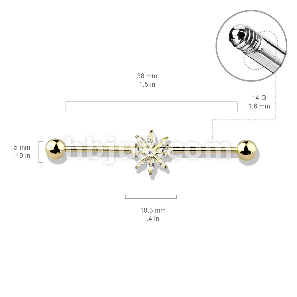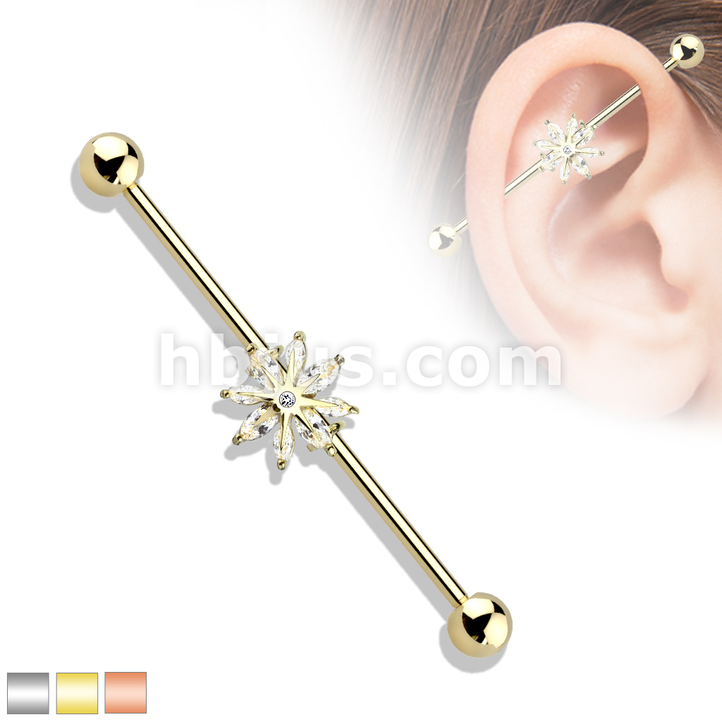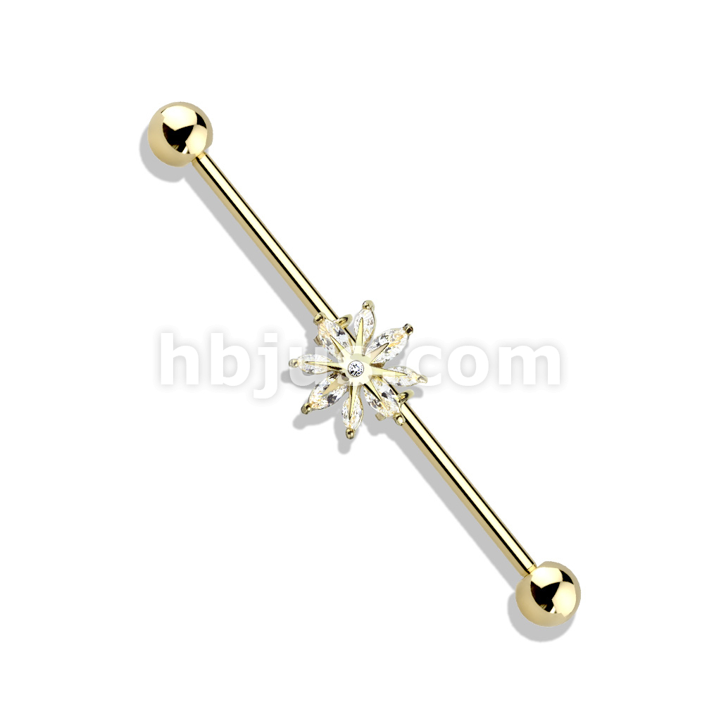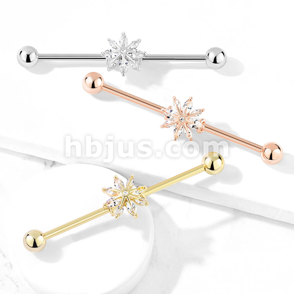 Marquise CZ Snowflake 316L Surgical Steel Industrial Barbell