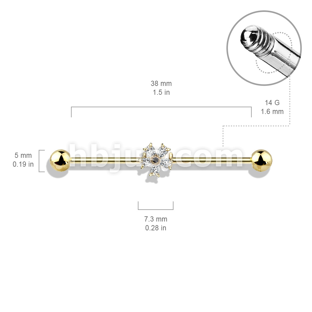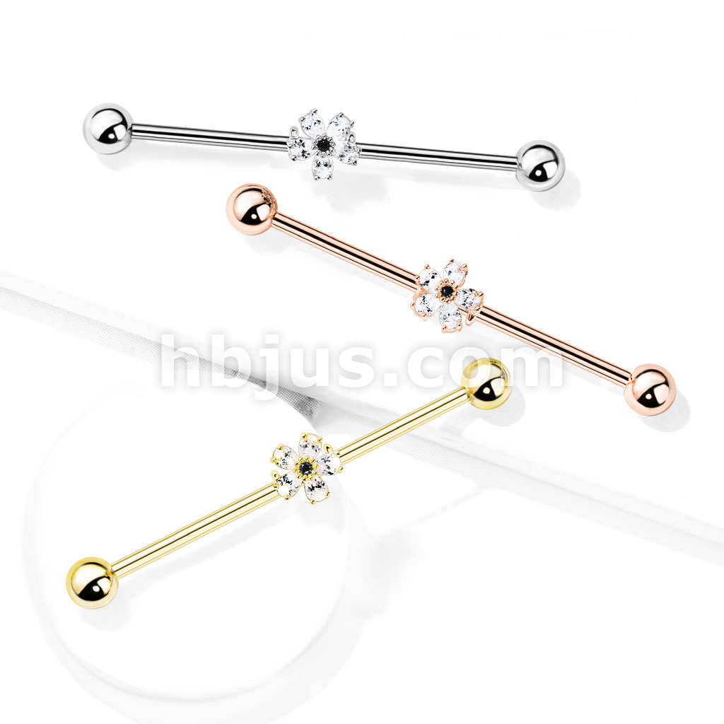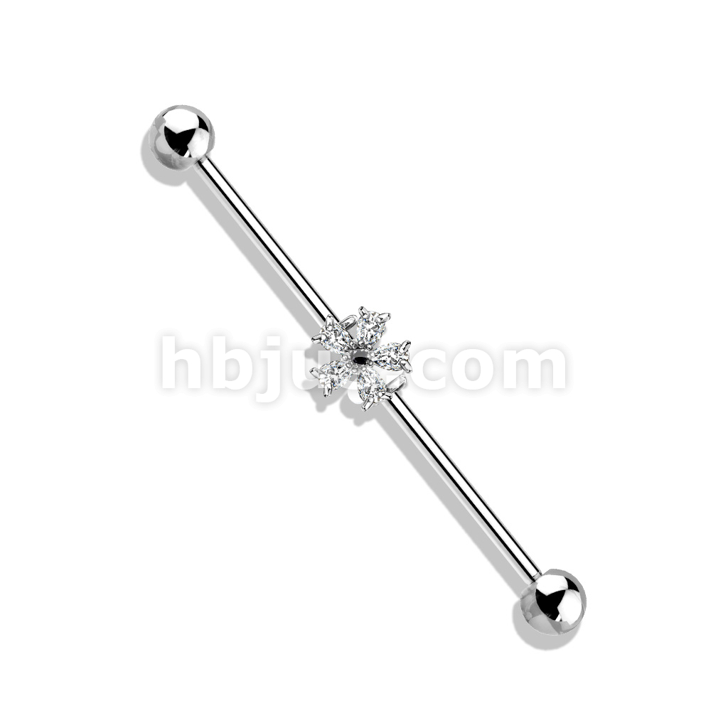 Black CZ Centered Five Pear CZ Flower 316L Surgical Steel Industrial Barbells