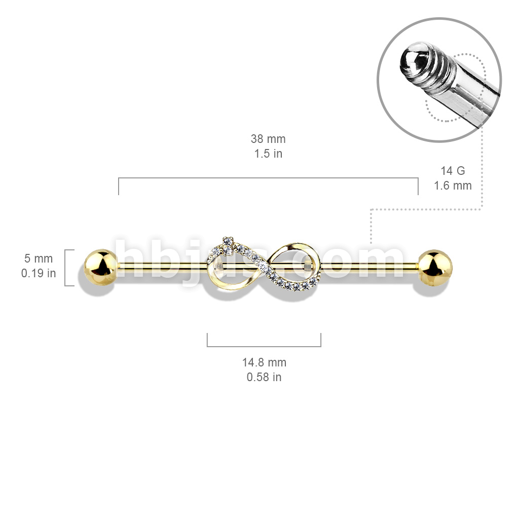 CZ Paved Infinity 316L Surgical Steel Industrial Barbells