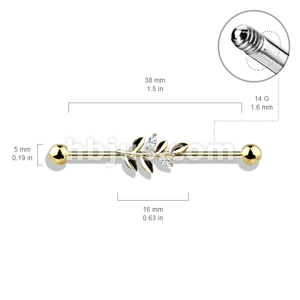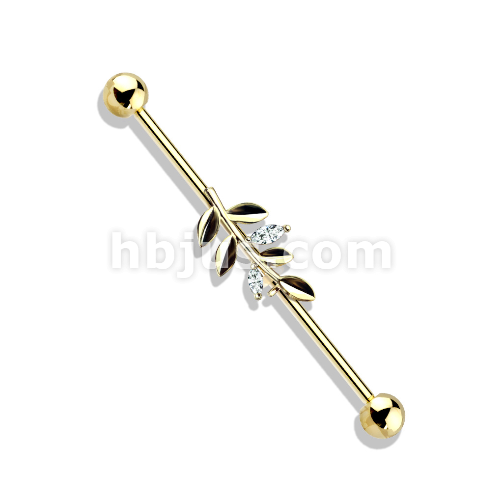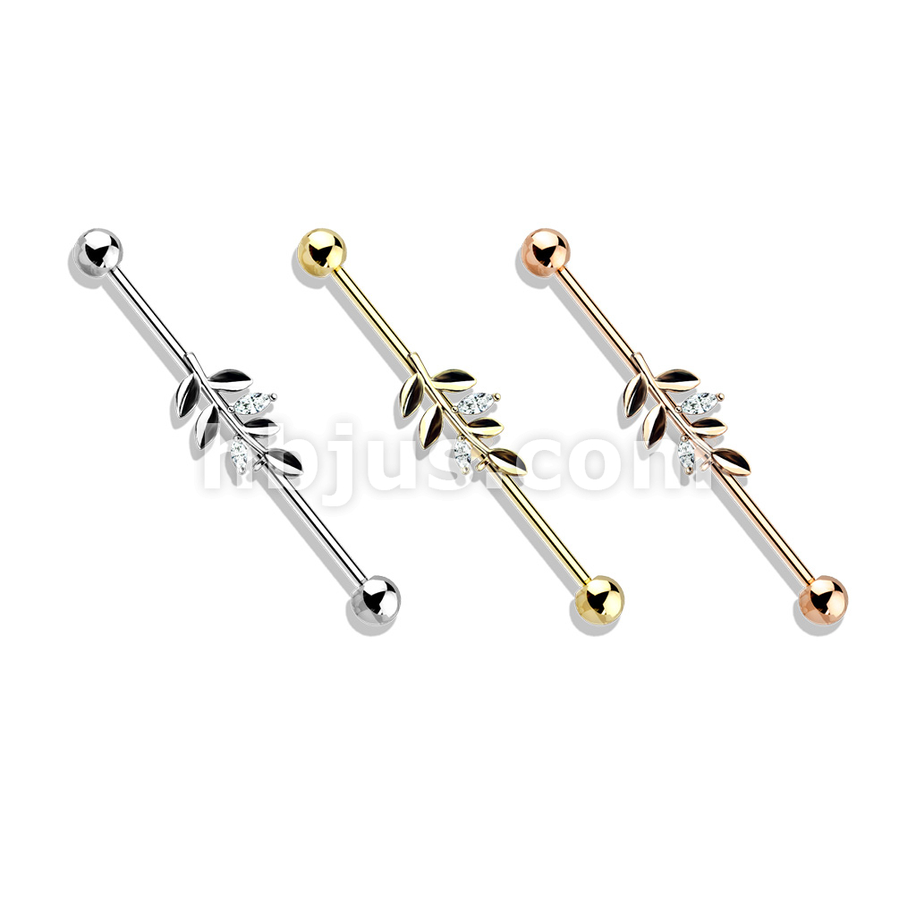 CZ Set Leaf 316L Surgical Steel Industrial Barbells
