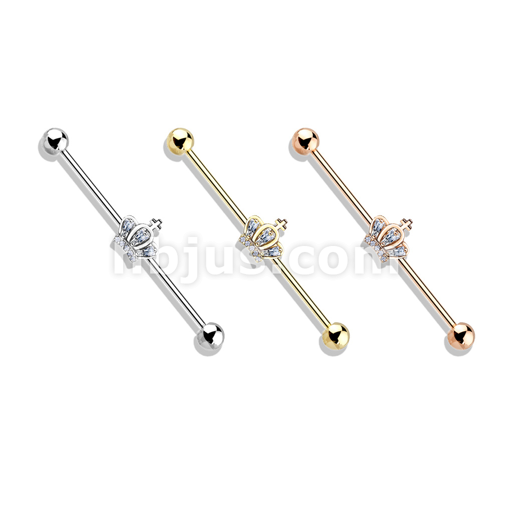 CZ Paved Crown 316L Surgical Steel Industrial Barbells