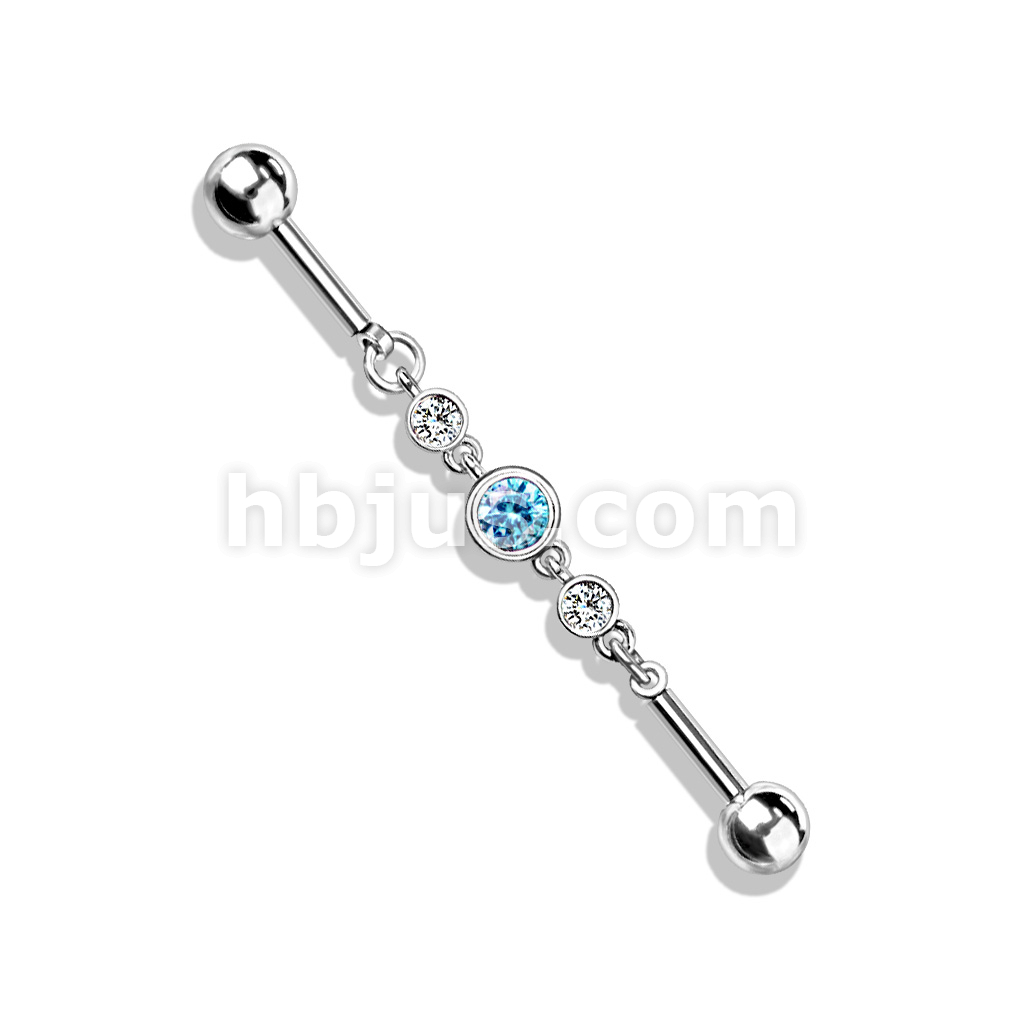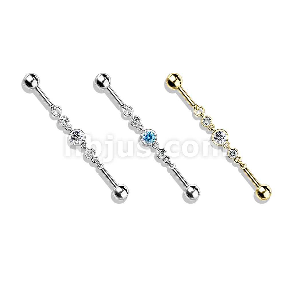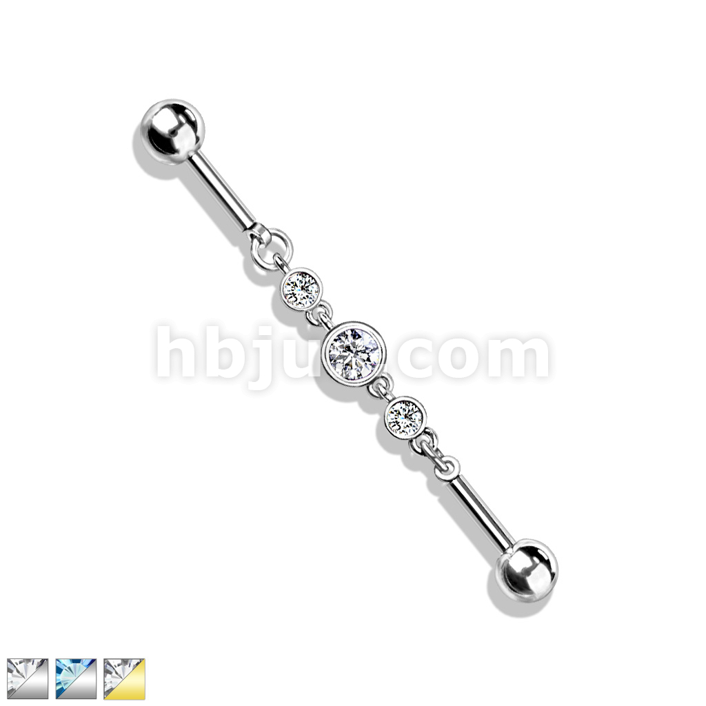 Triple Round CZ Chain 316L Surgical Steel Industrial Barbell