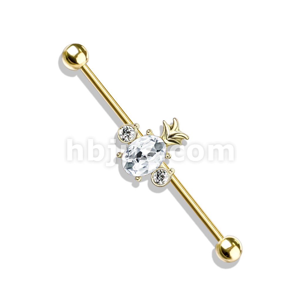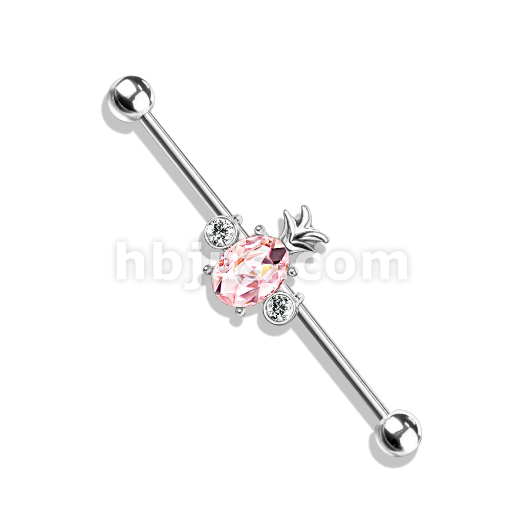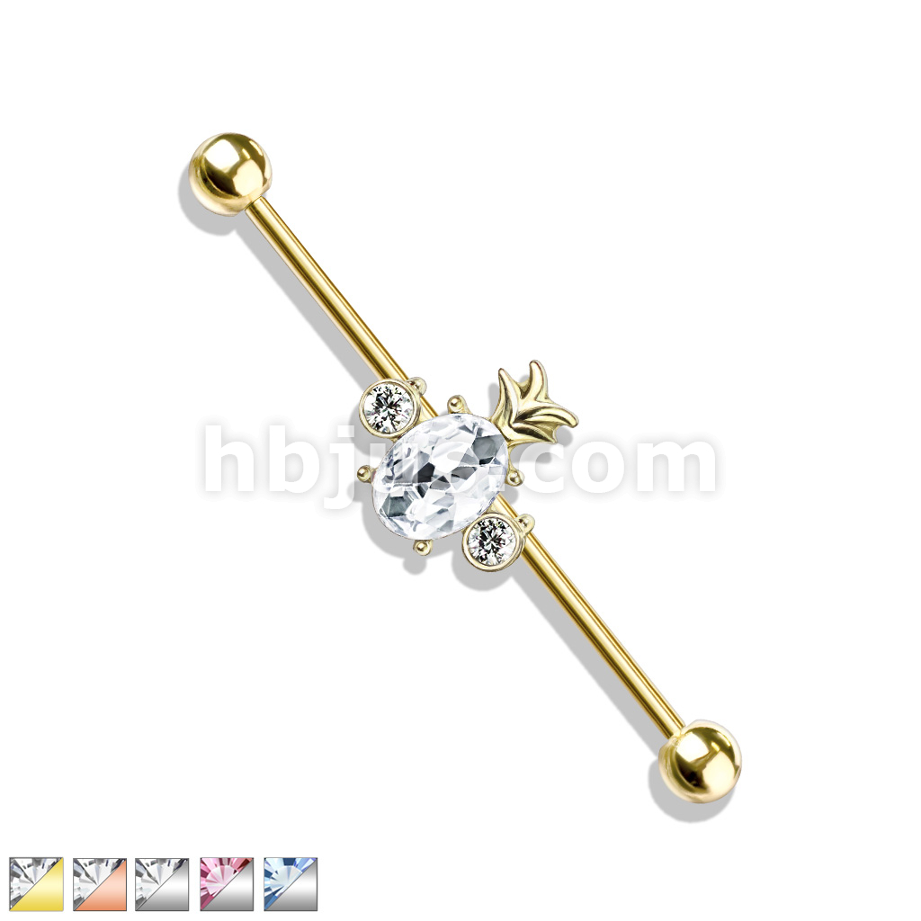 Oval Crystal Set Pineapple with Double Round Crystals 316L Surgical Steel Industrial Barbell