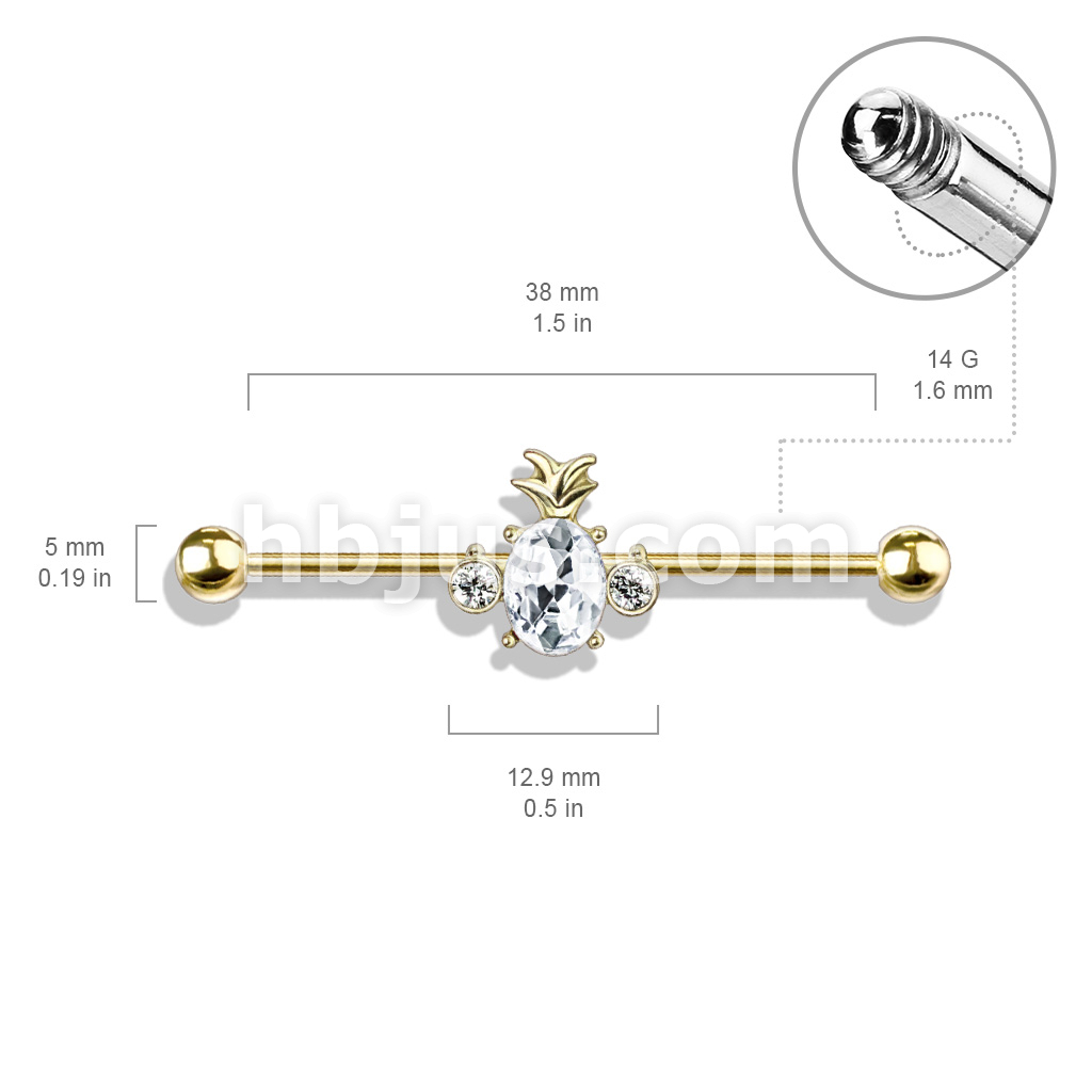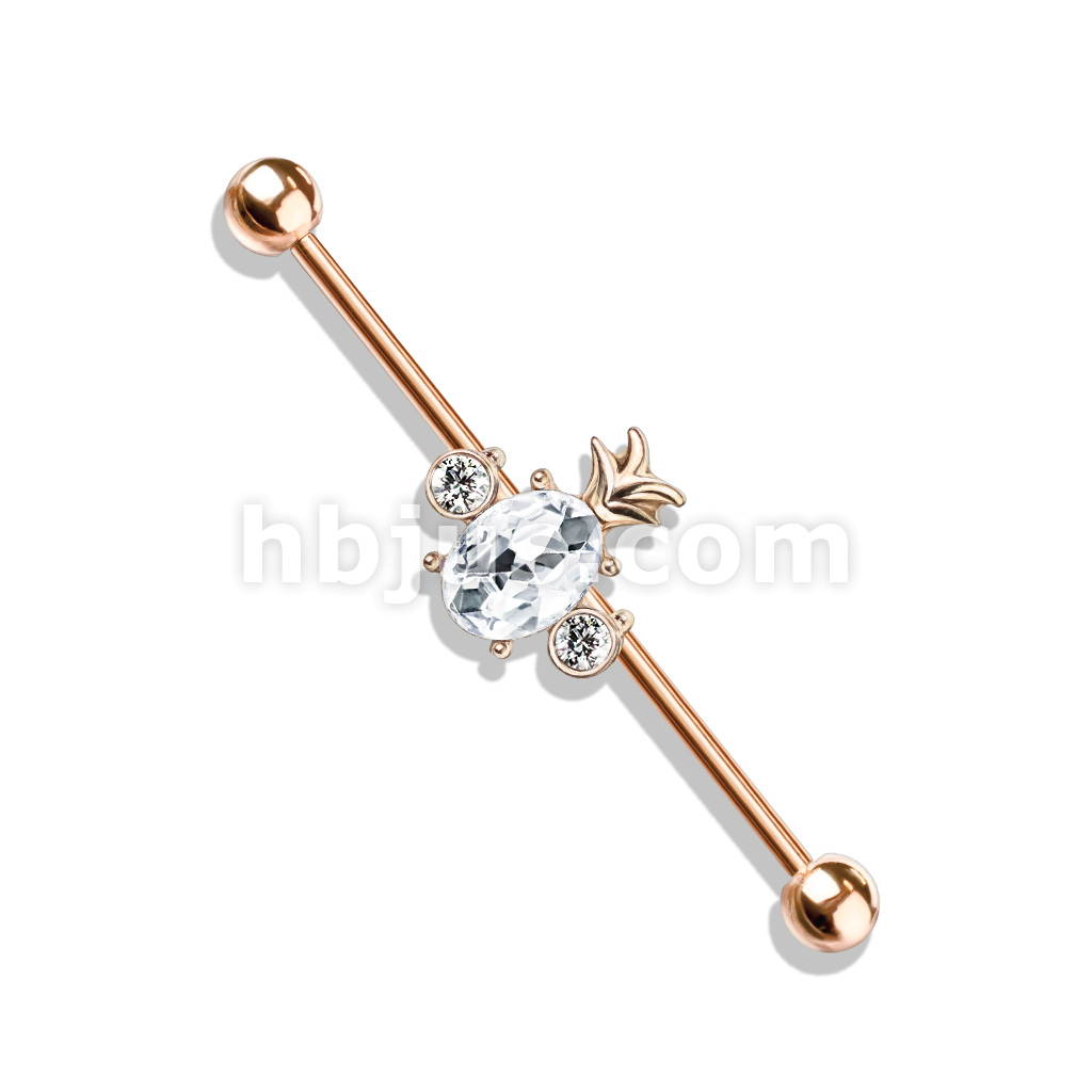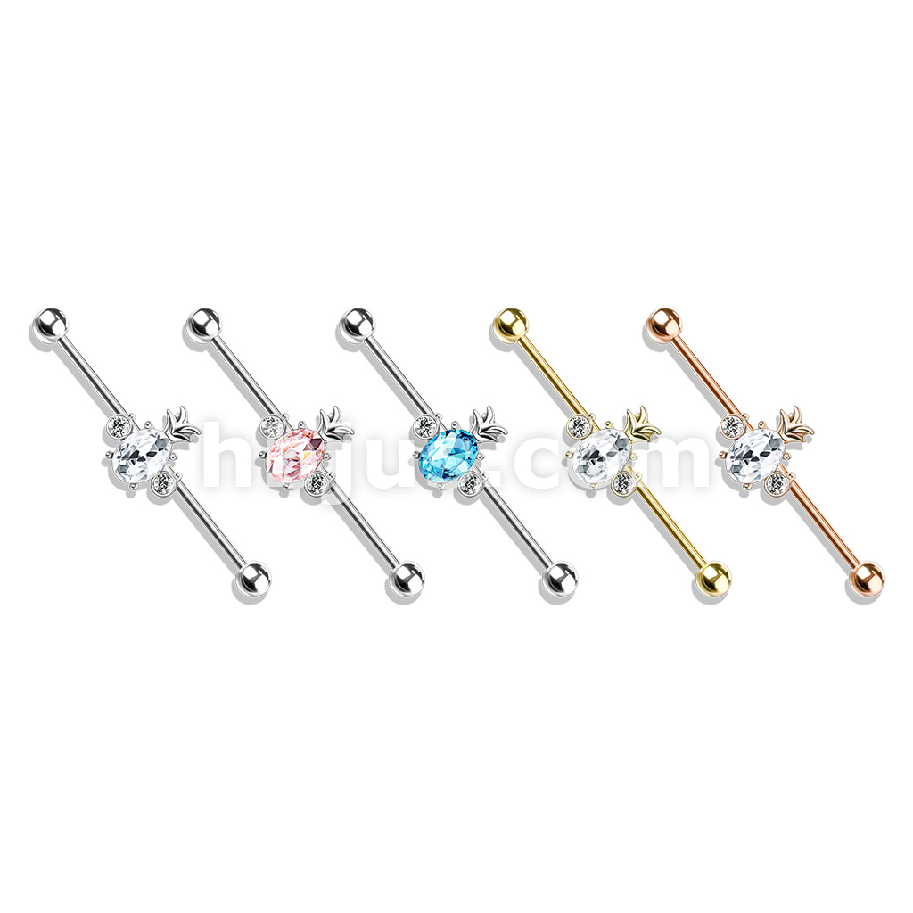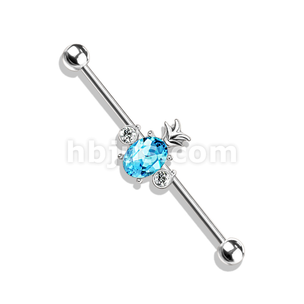 Oval Crystal Set Pineapple with Double Round Crystals 316L Surgical Steel Industrial Barbell