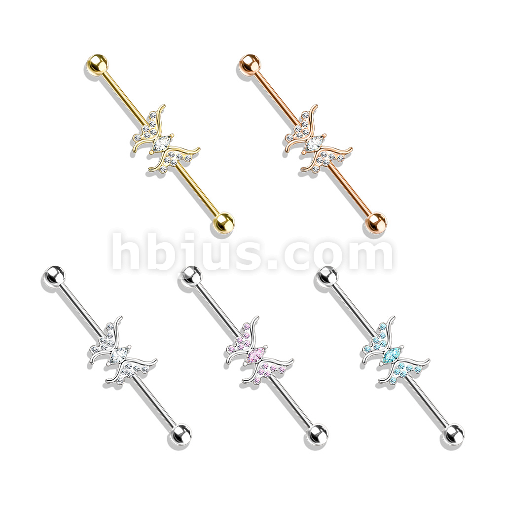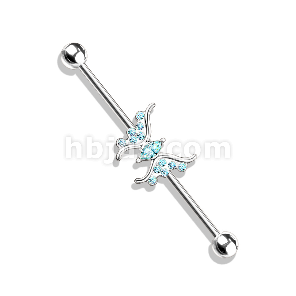 Marquise Crystal Center Crystal Paved Butterfly 316L Surgical Steel Industrial Barbell