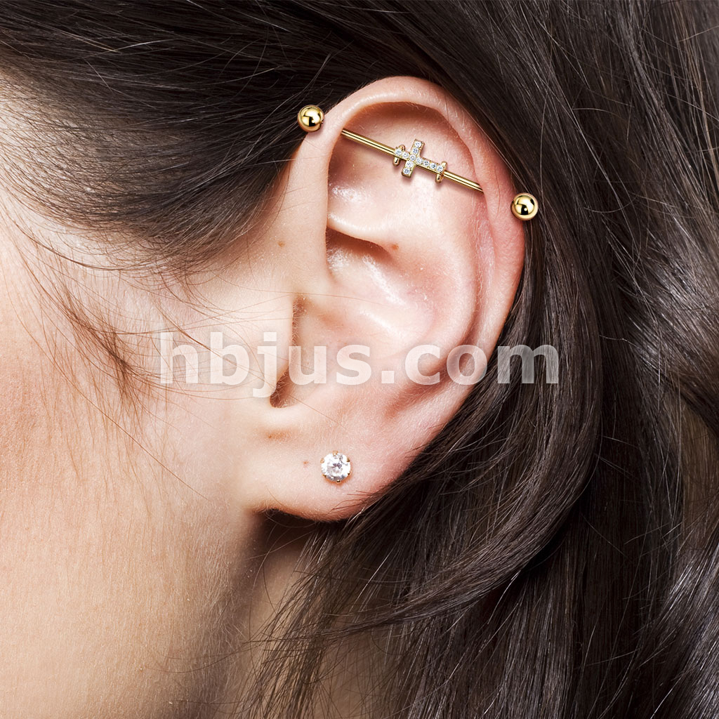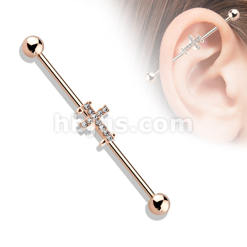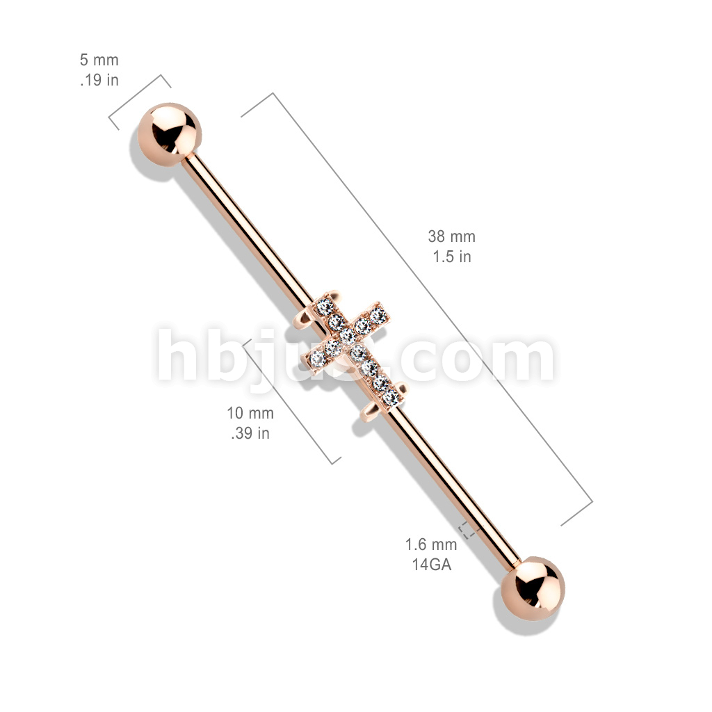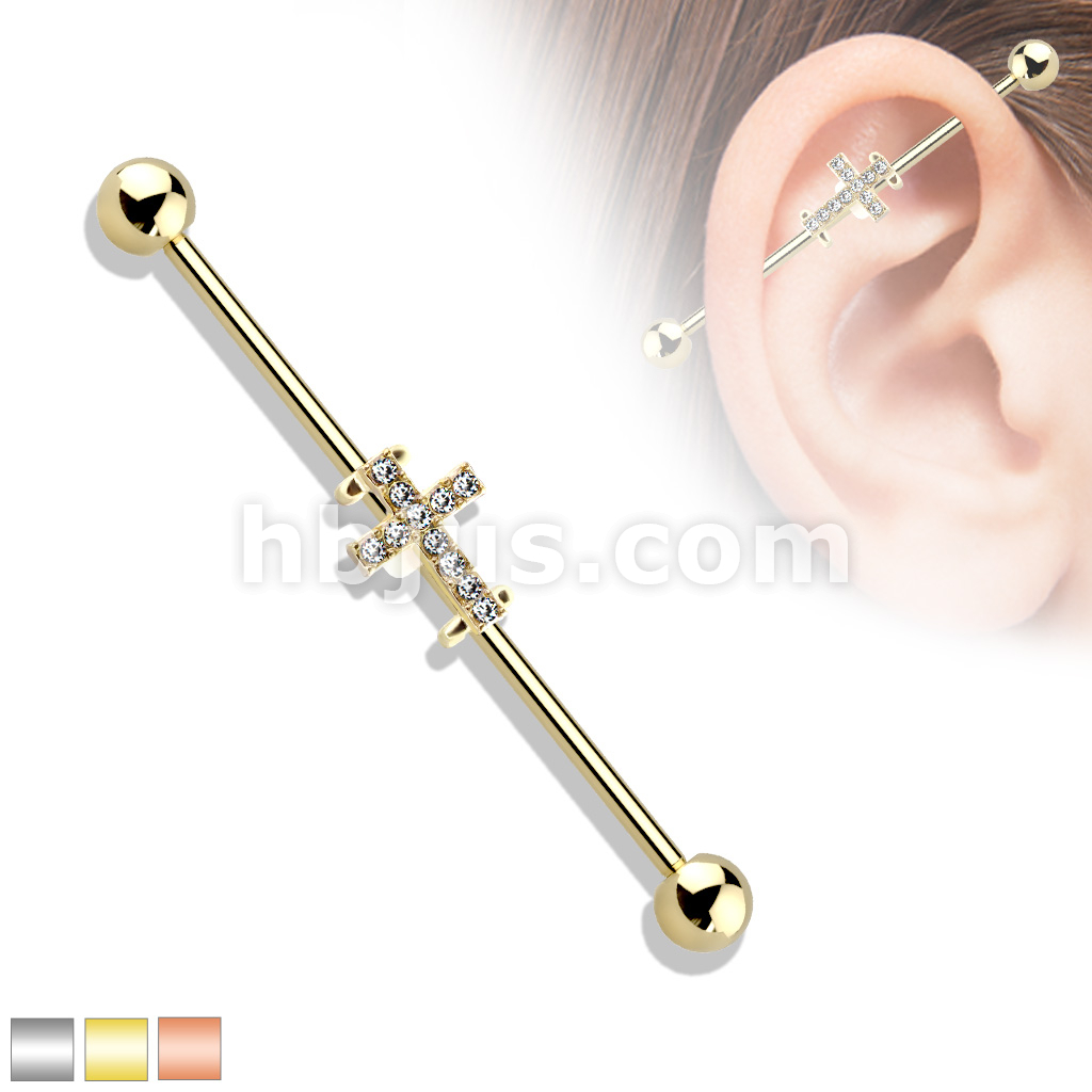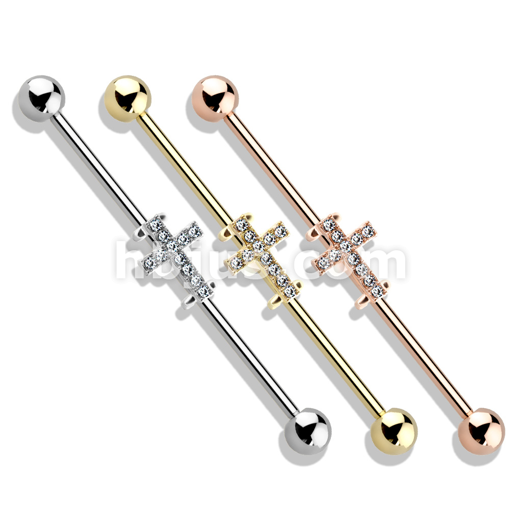 Crystal Paved Cross 316L Surgical Steel Industrial Barbell