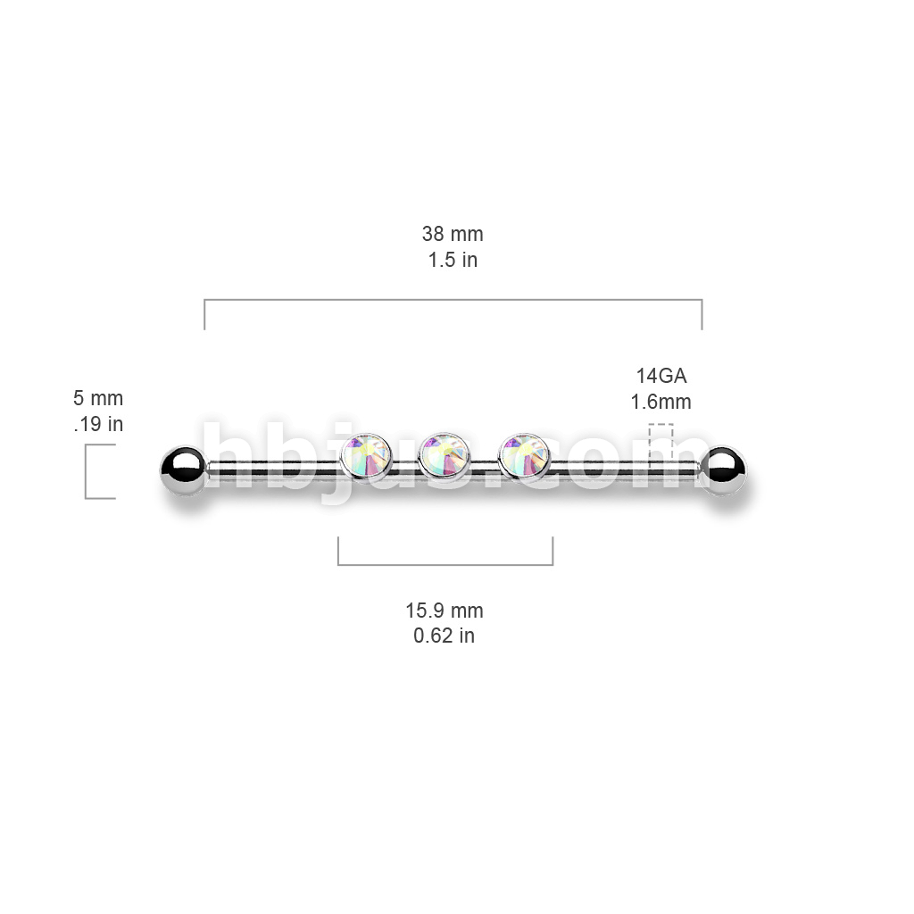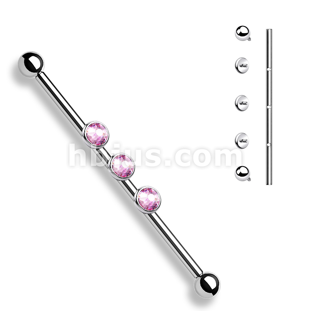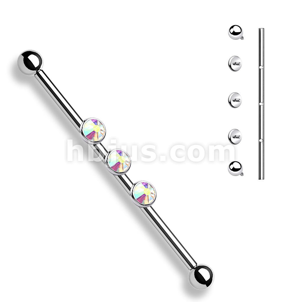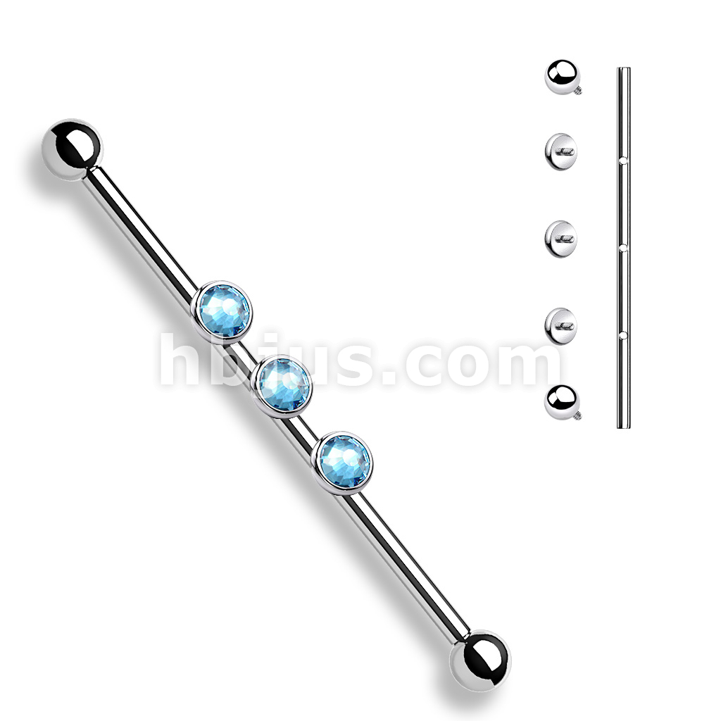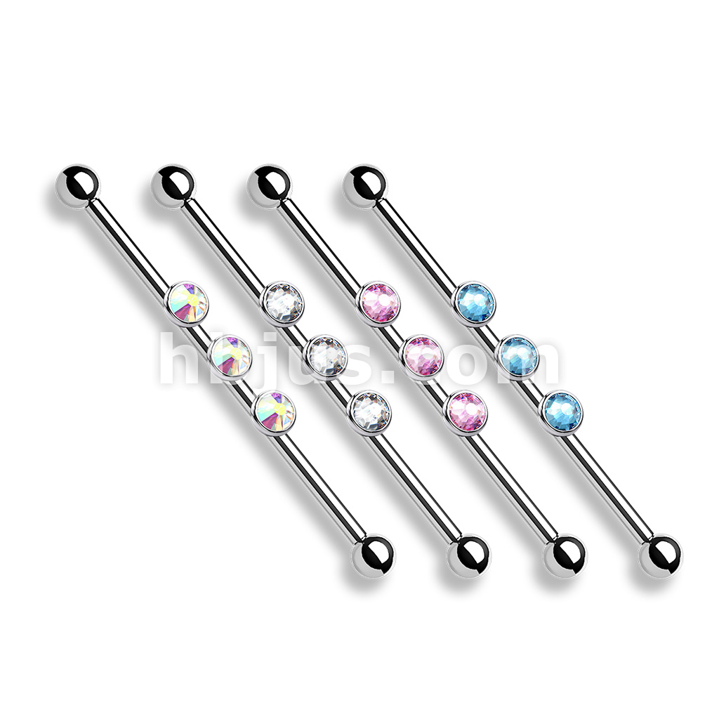 3-Internal Thread Round Gem 316L Surgical Steel Internal thread Industrial Barbells