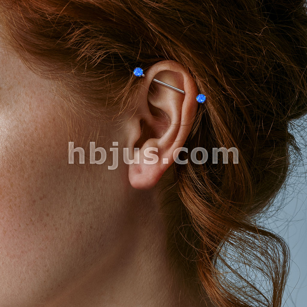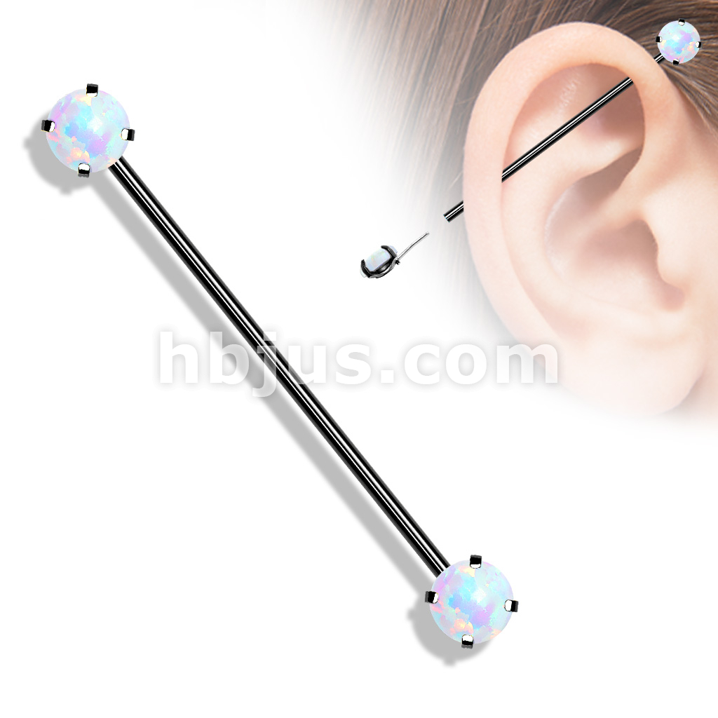 316L Surgical Steel Threadless Push in Industrial Barbells with Prong Set Opal Ends