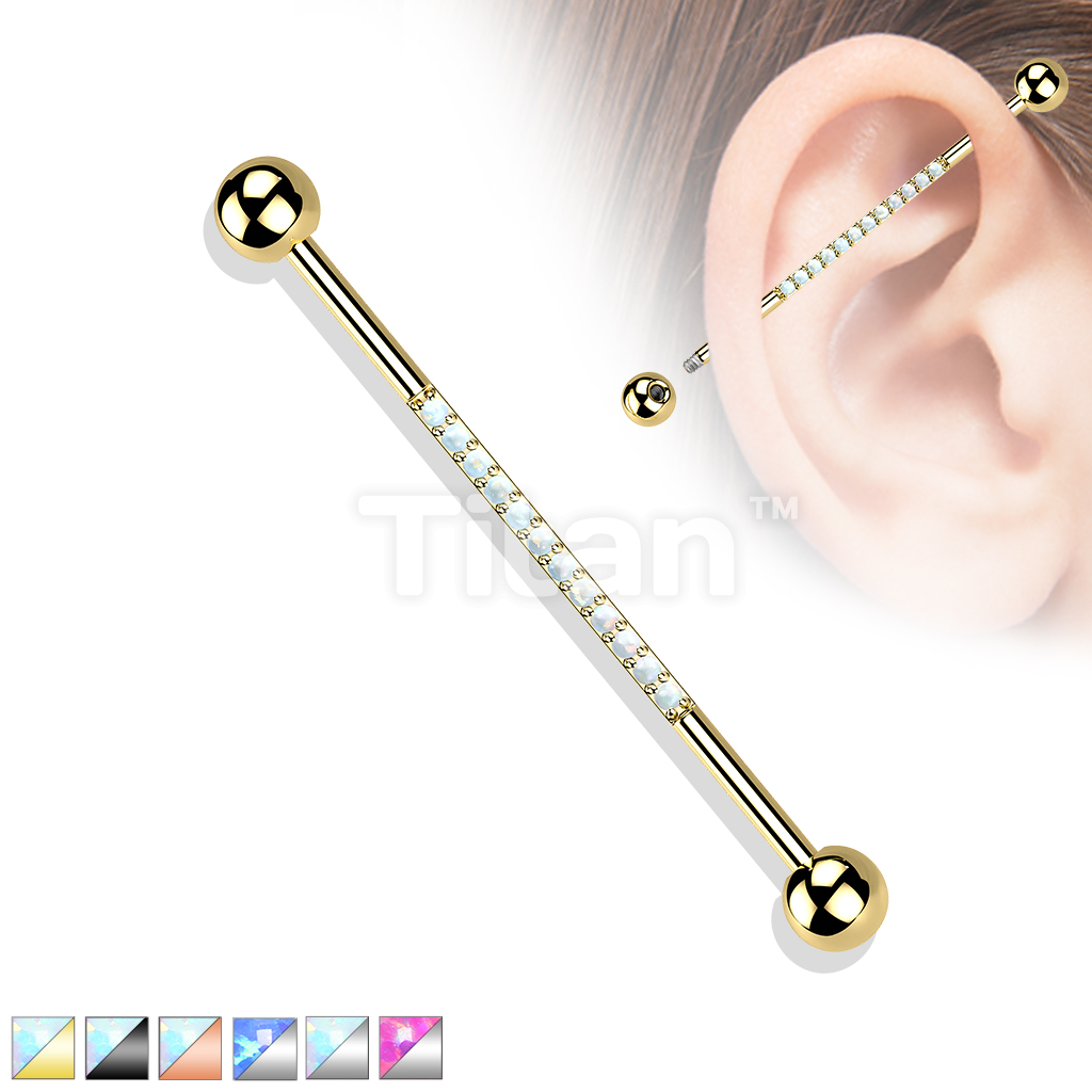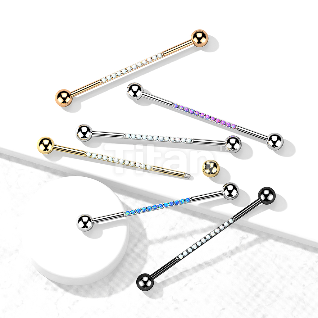 Implant Grade Titanium Externally Threaded Industrial Barbell With CNC Set CZs or Opals on Bar