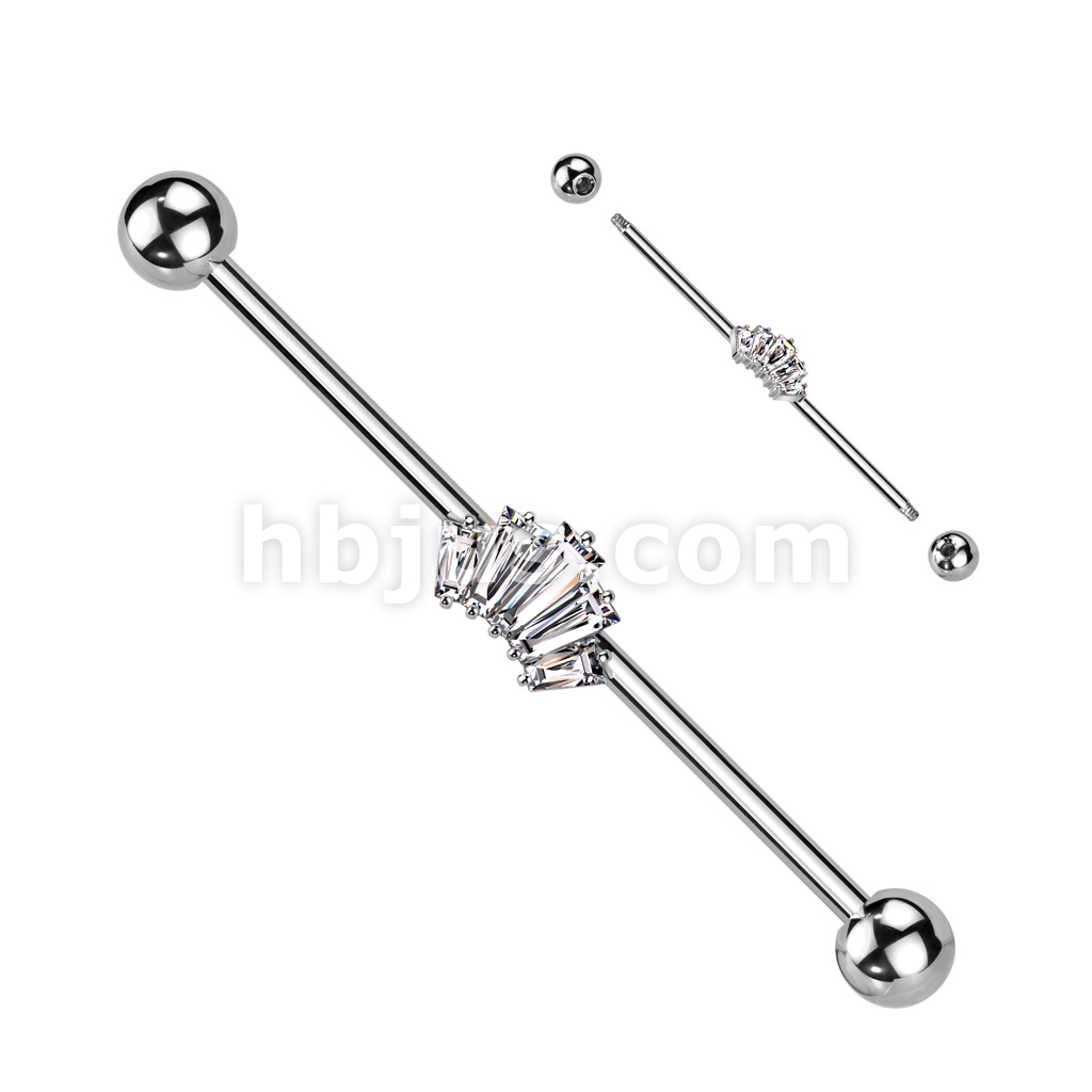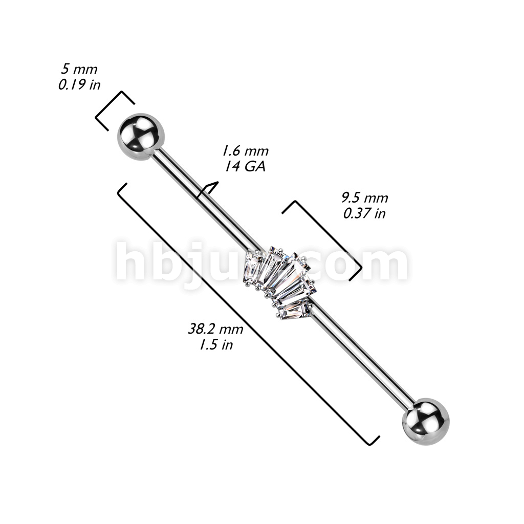 316L Surgical Steel Baguette CZ Crown Industrial Barbell