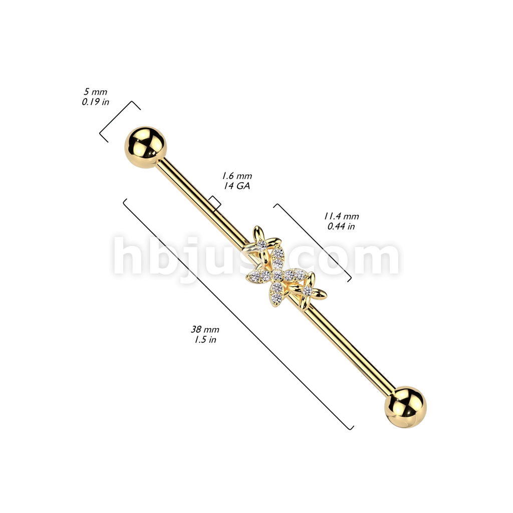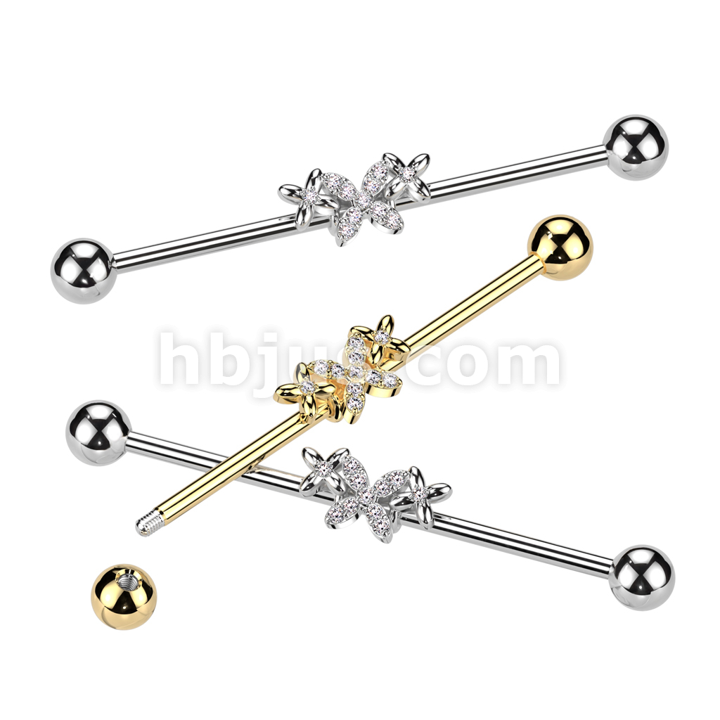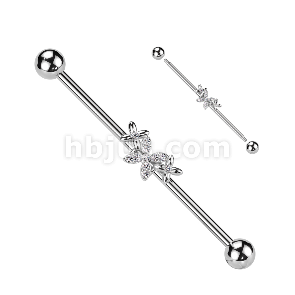 316L Surgical Steel Triple Butterfly With Pave CZ Center Butterfly