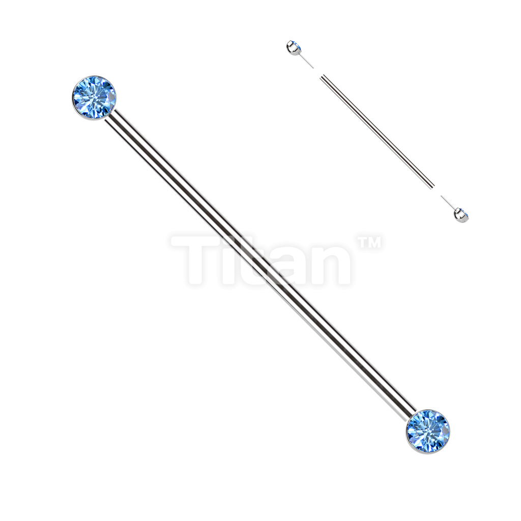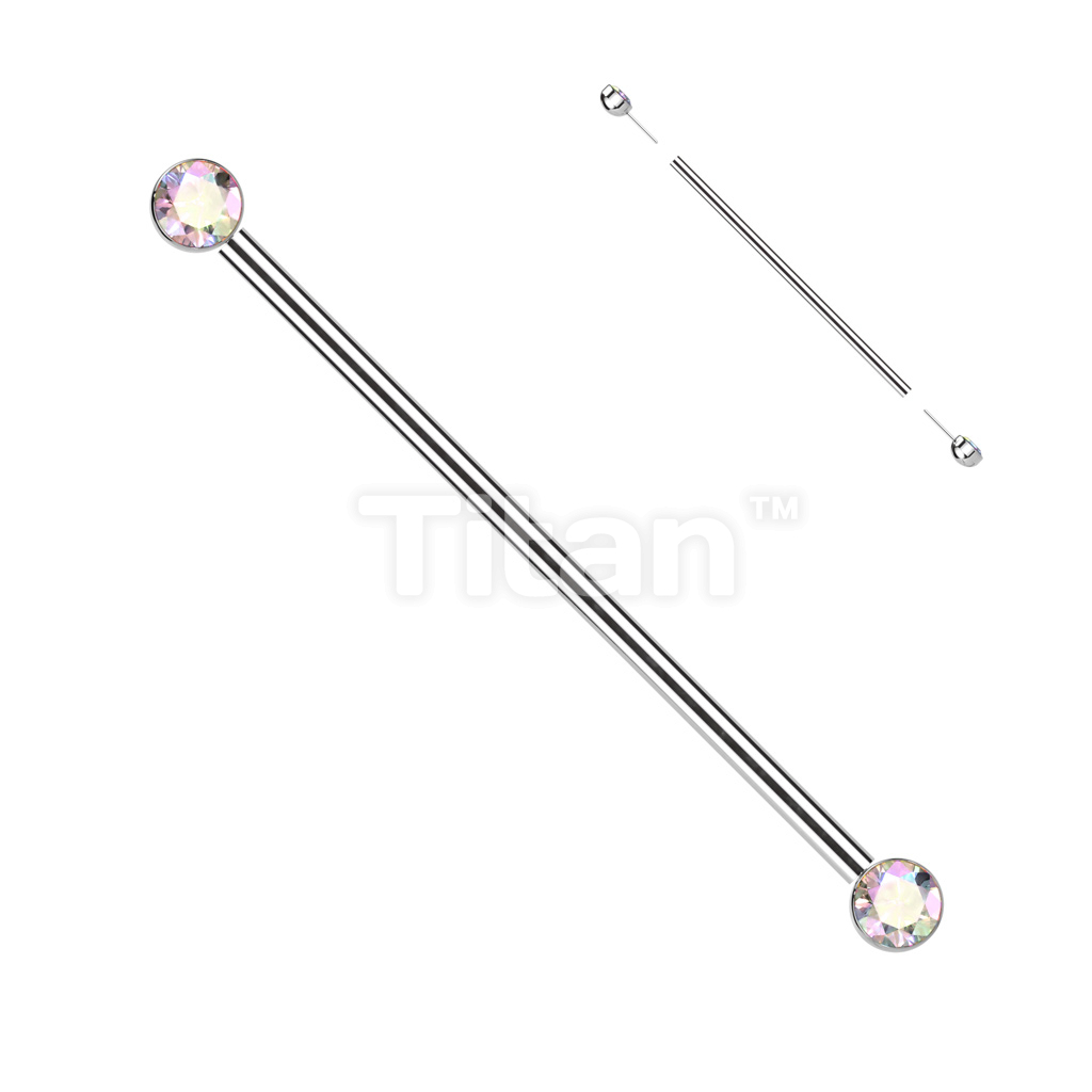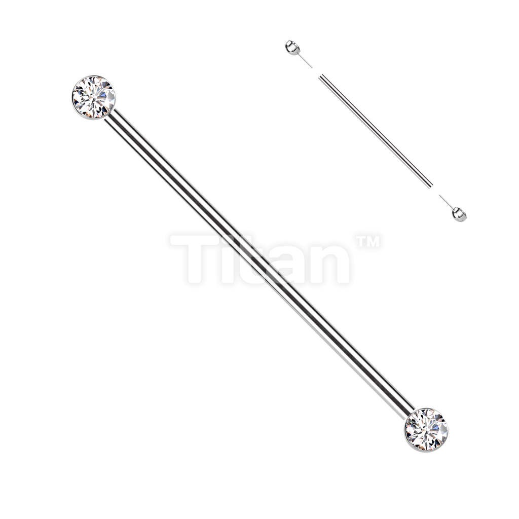 Implant Grade Titanium Threadless Industrial Barbell With Bezel Set CZ Ends