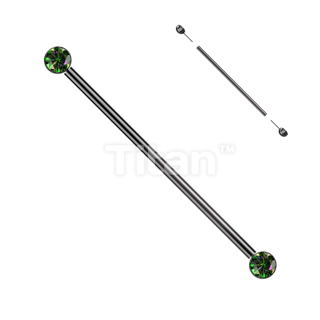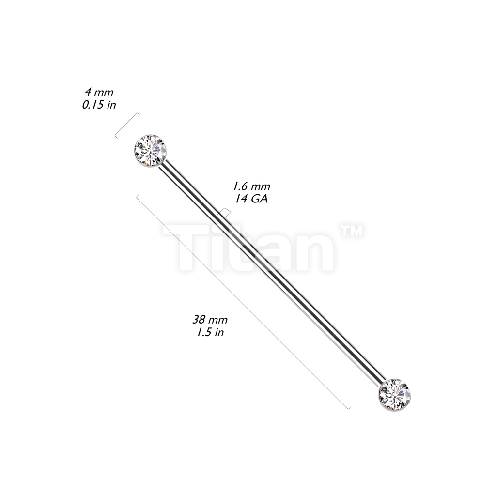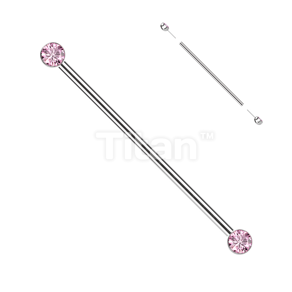 Implant Grade Titanium Threadless Industrial Barbell With Bezel Set CZ Ends