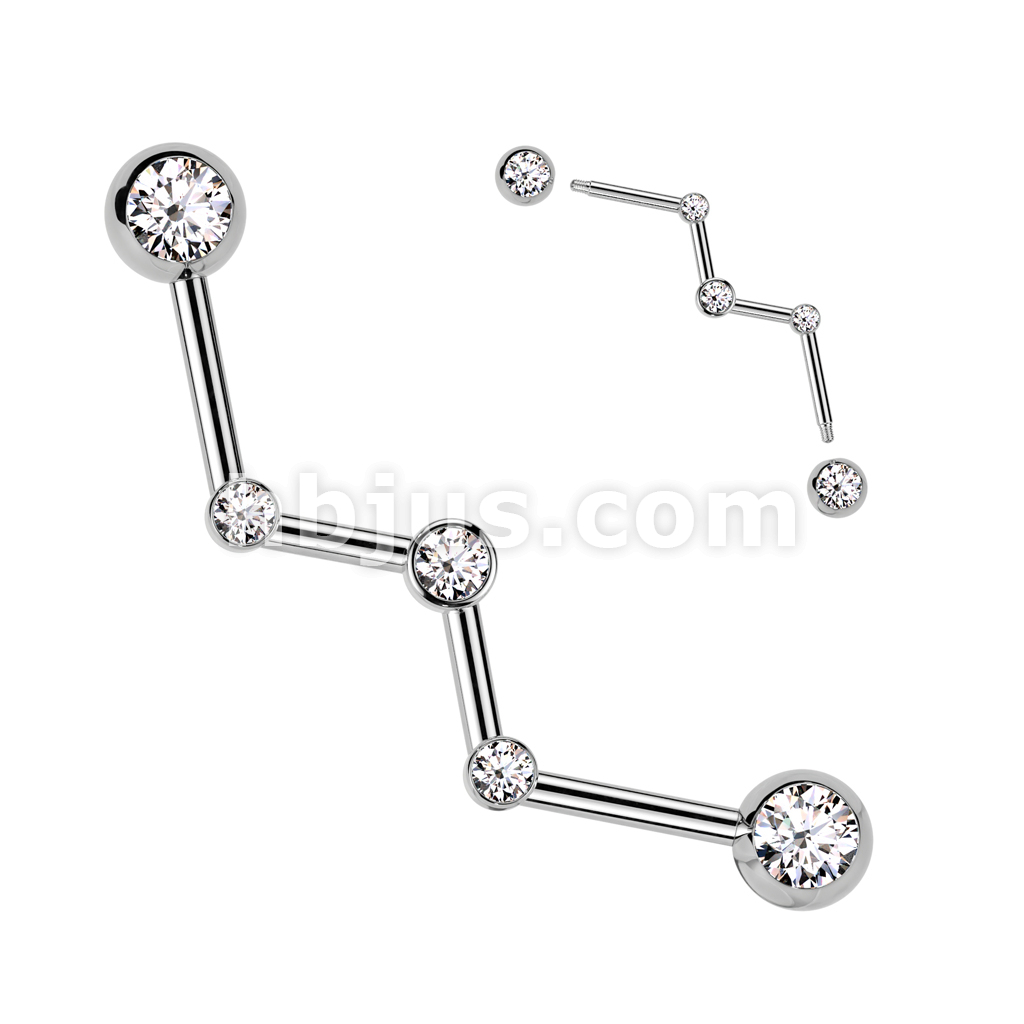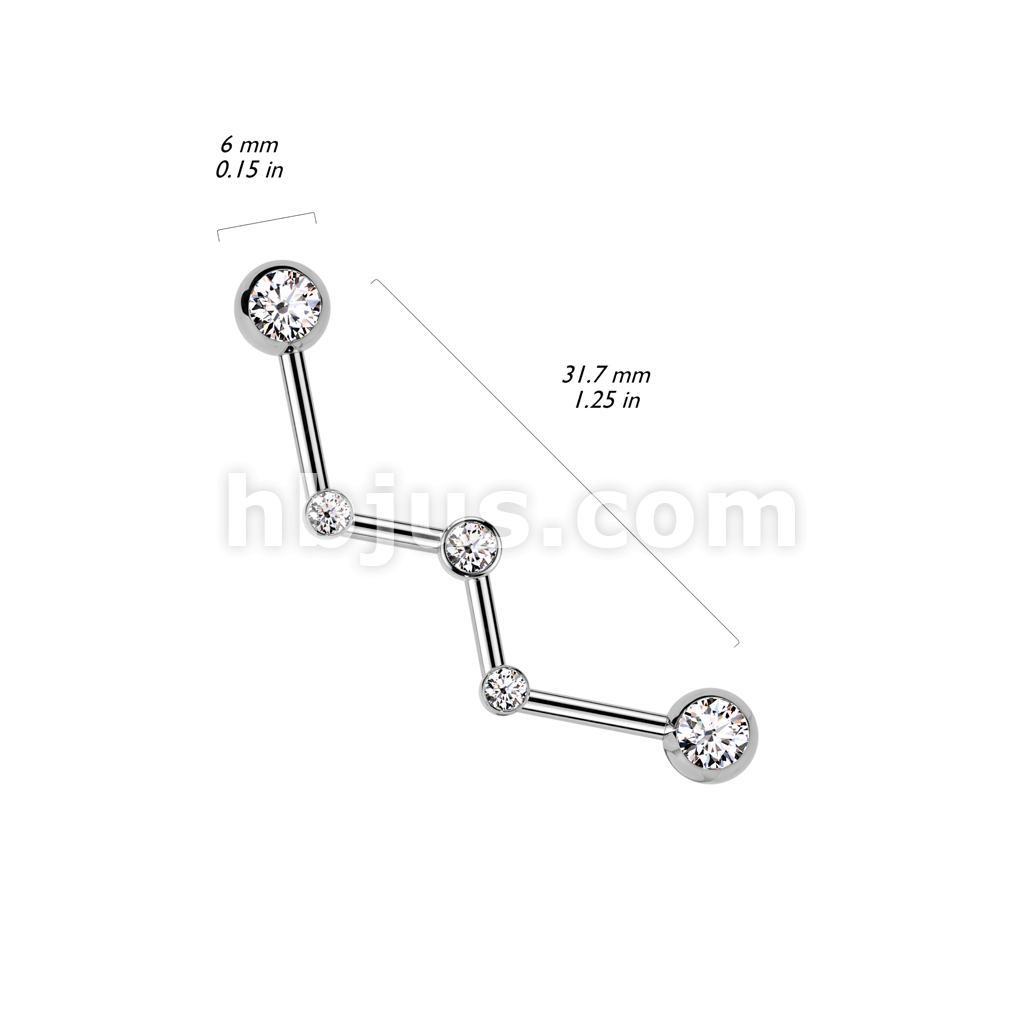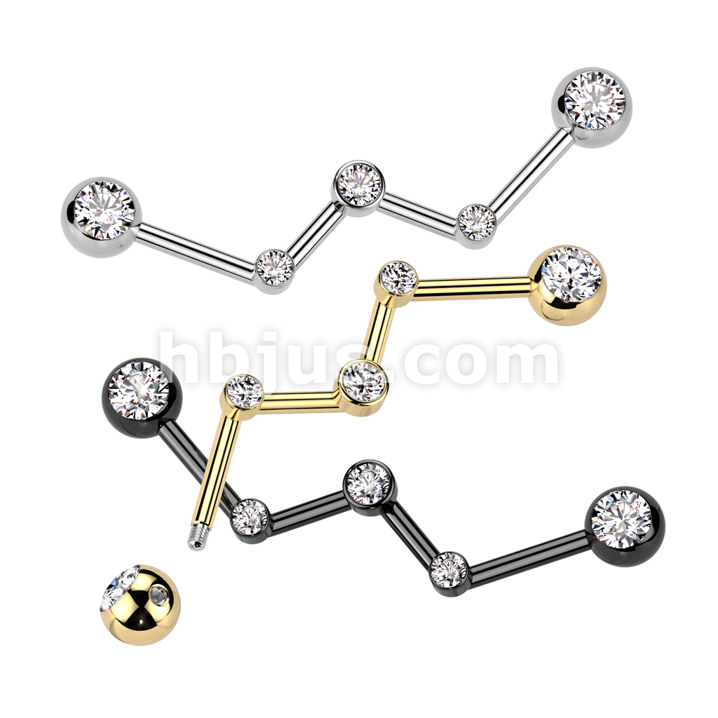 316L Surgical Steel Zig Zag Industrial Barbell With Bezel Set Forward Facing Gems