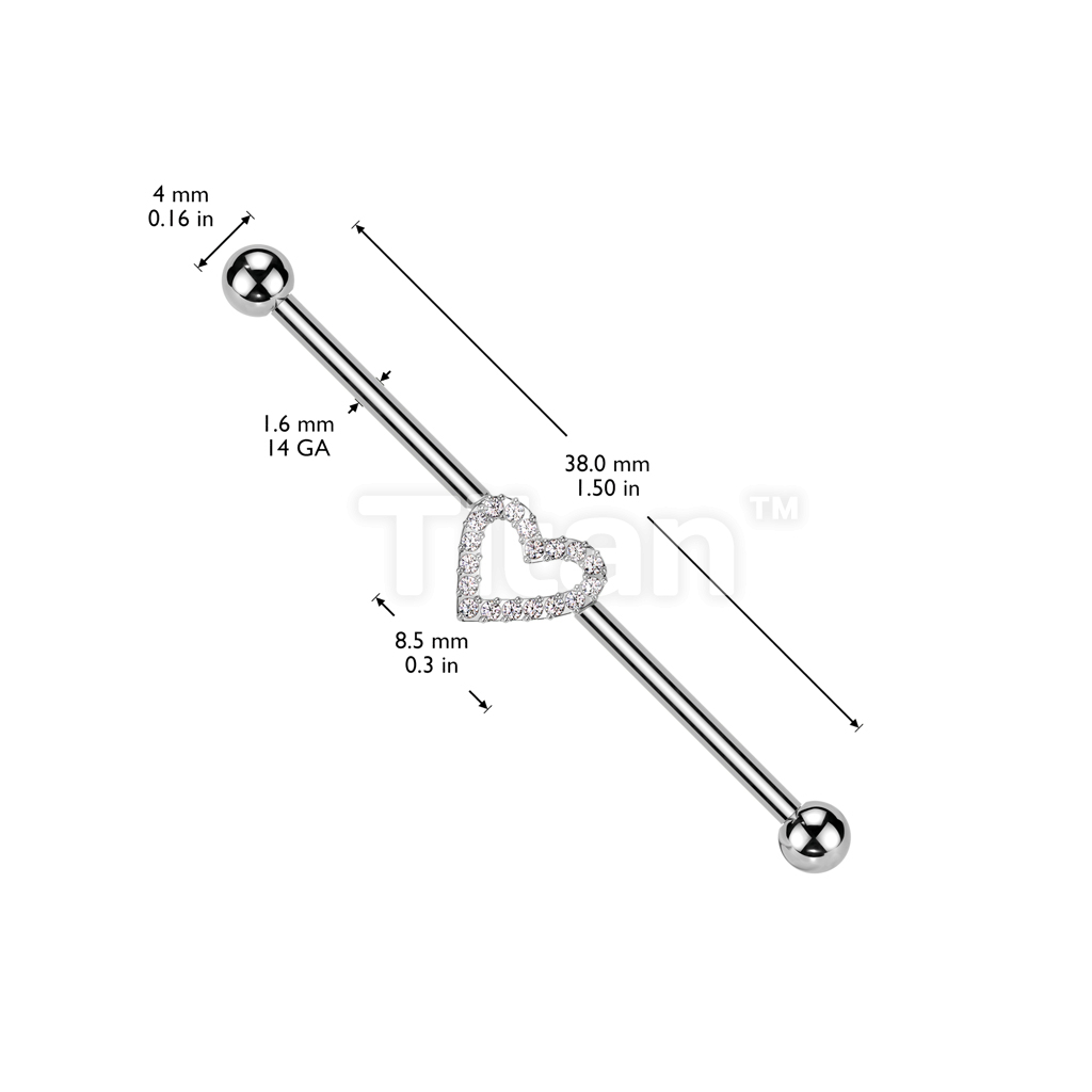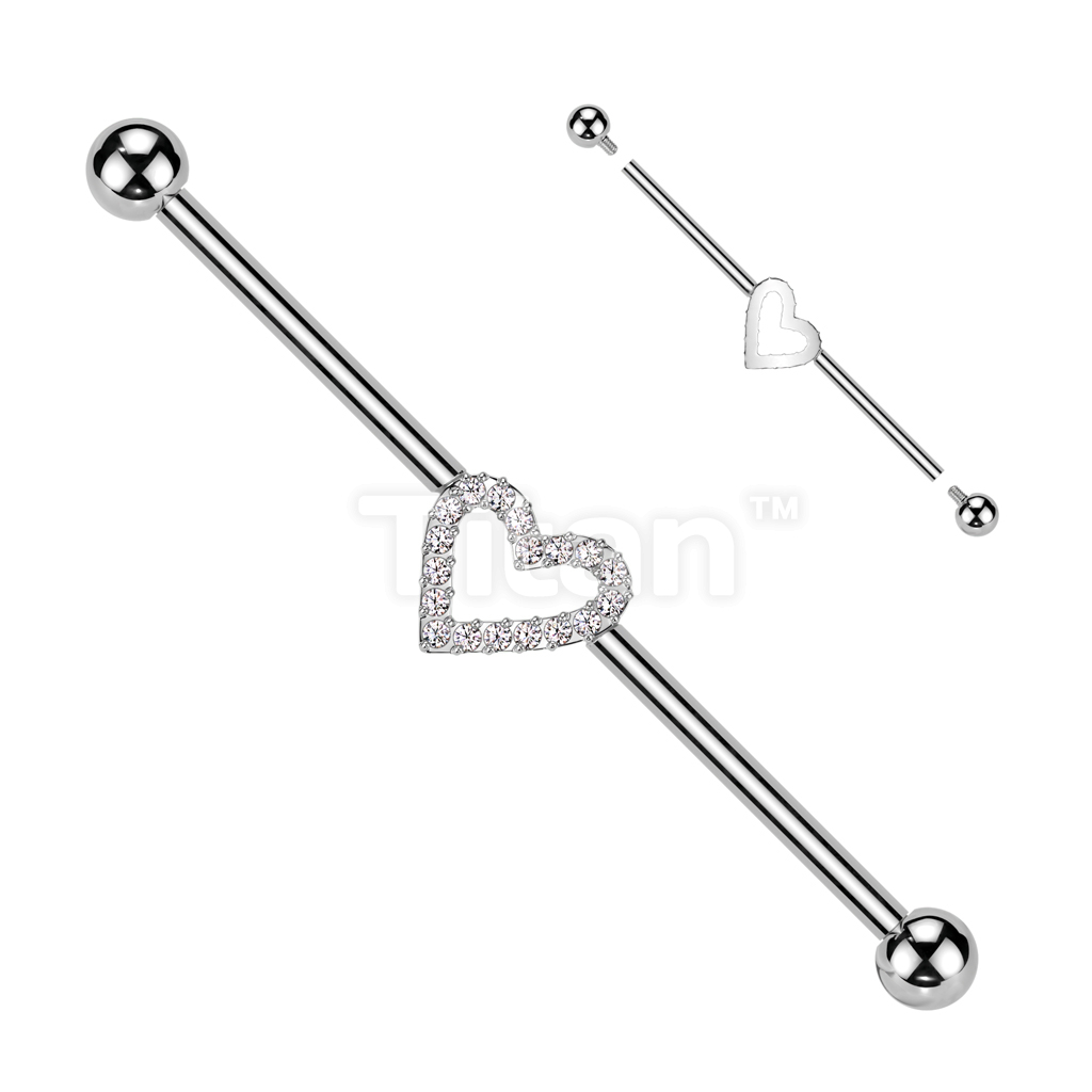 Implant Grade Titanium Internally Threaded Industrial Barbell With Hollow CZ Heart