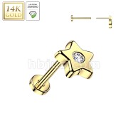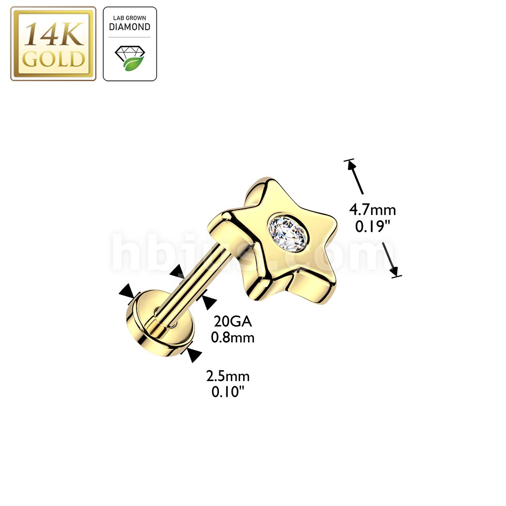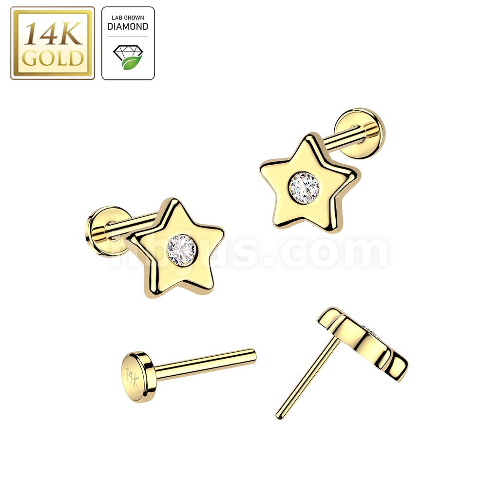 14K Gold Threadless Push In 20ga Flat Back Stud Star With Center Lab Grown Diamond