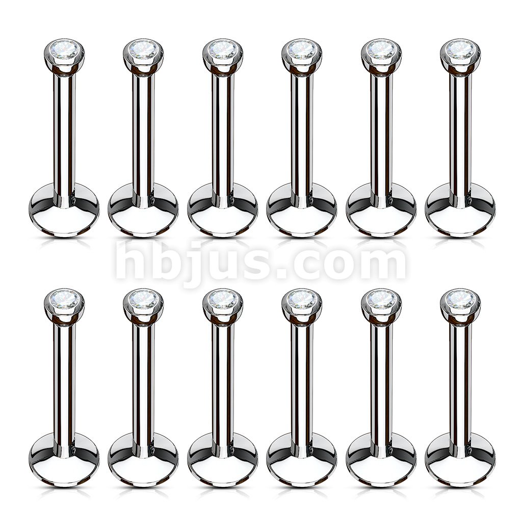 200pc 18GA Internally Threaded Labret with Press Fit Gem 316L Surgical Steel Pack (4 Sizes Available)