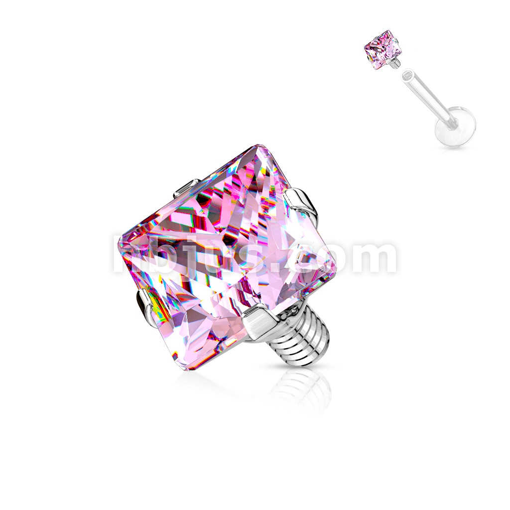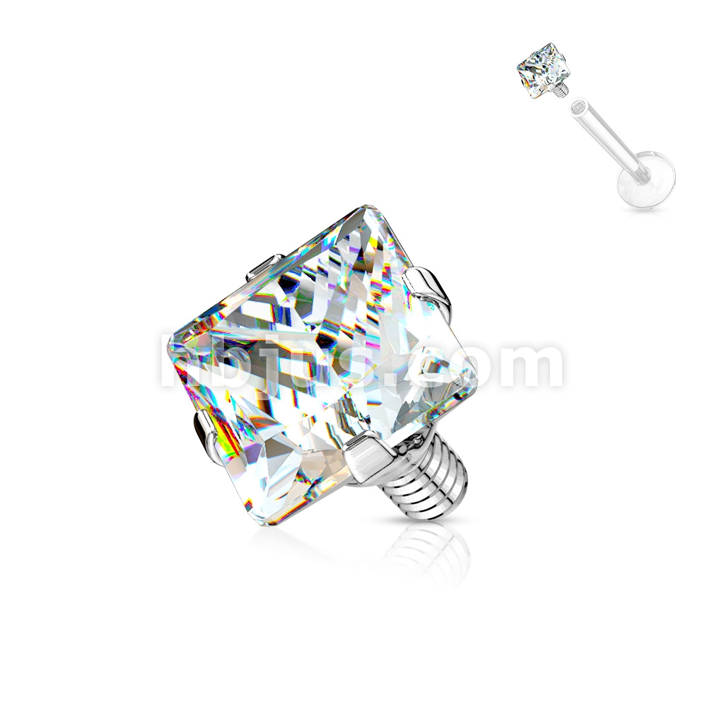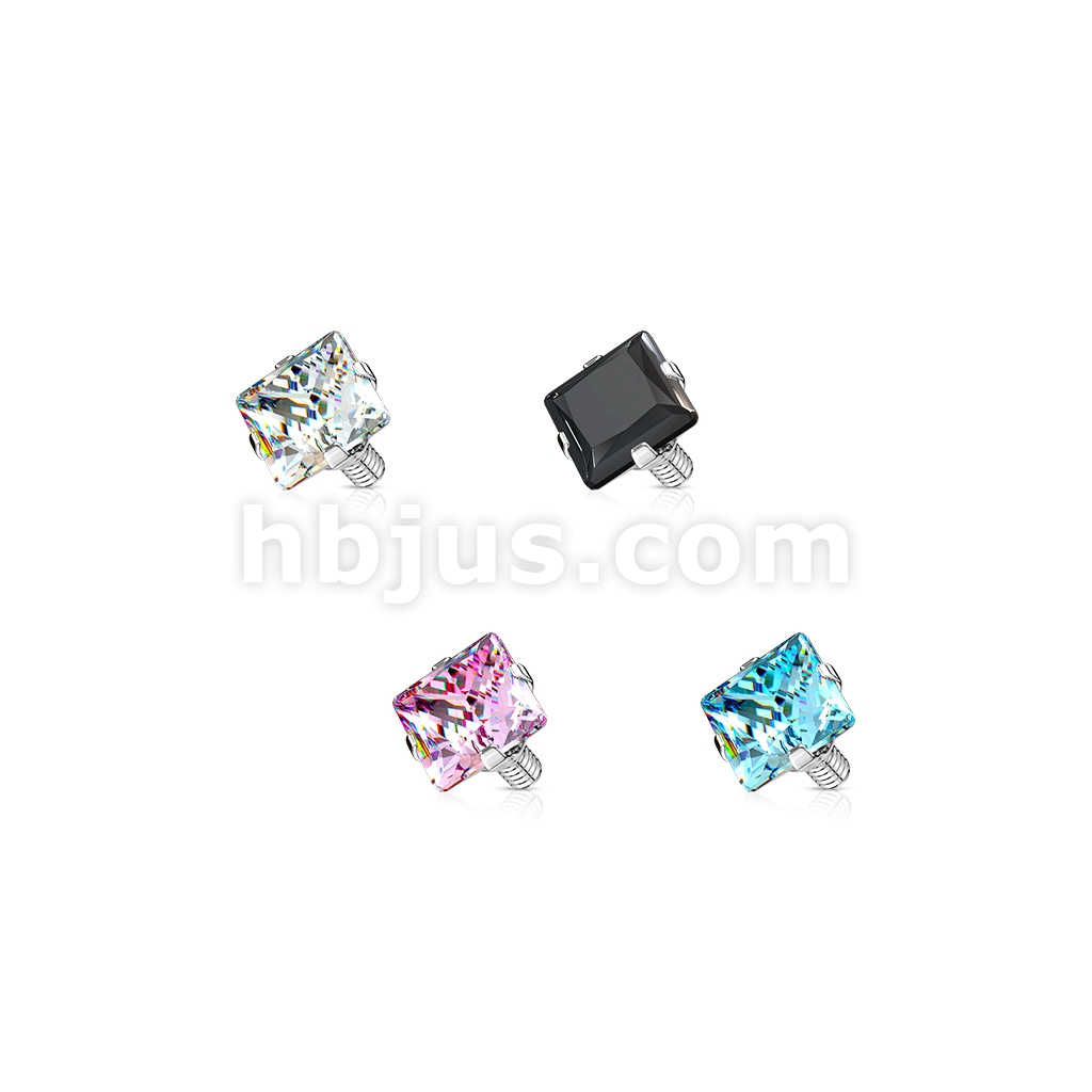 10 Pcs Pack of Square CZ Prong Set Threaded Top Part for Internally Threaded Bar