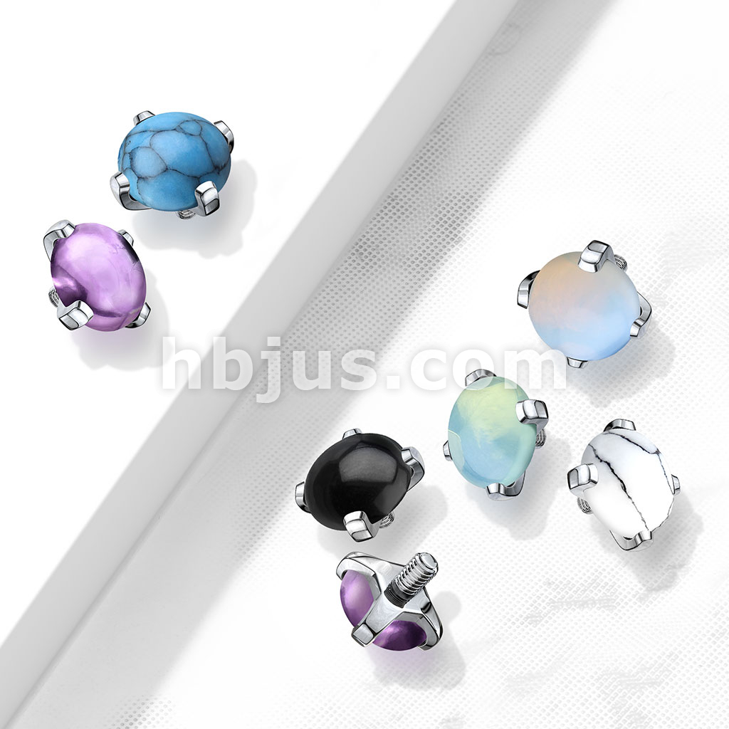 10 pc Pack Semi Precious Stone Prong Set 316L Surgical Steel Internally Threaded Top Parts