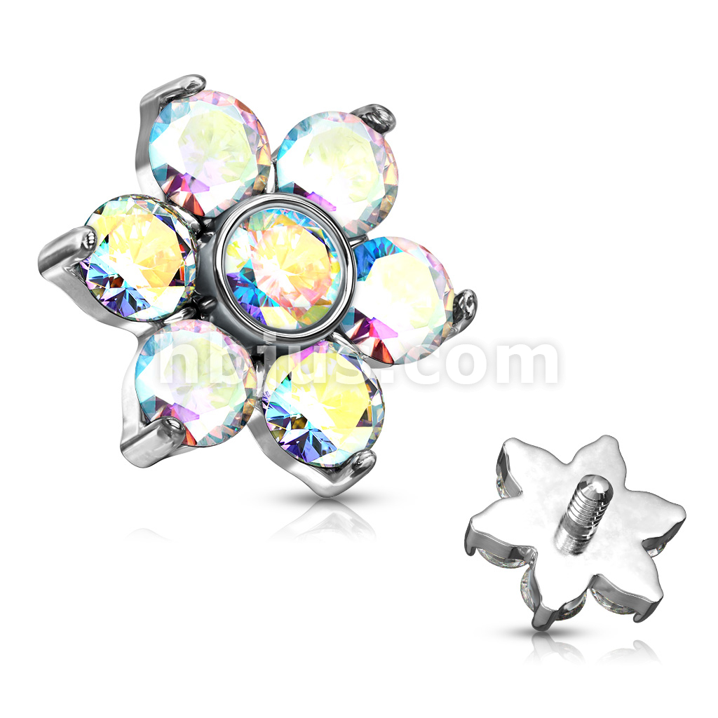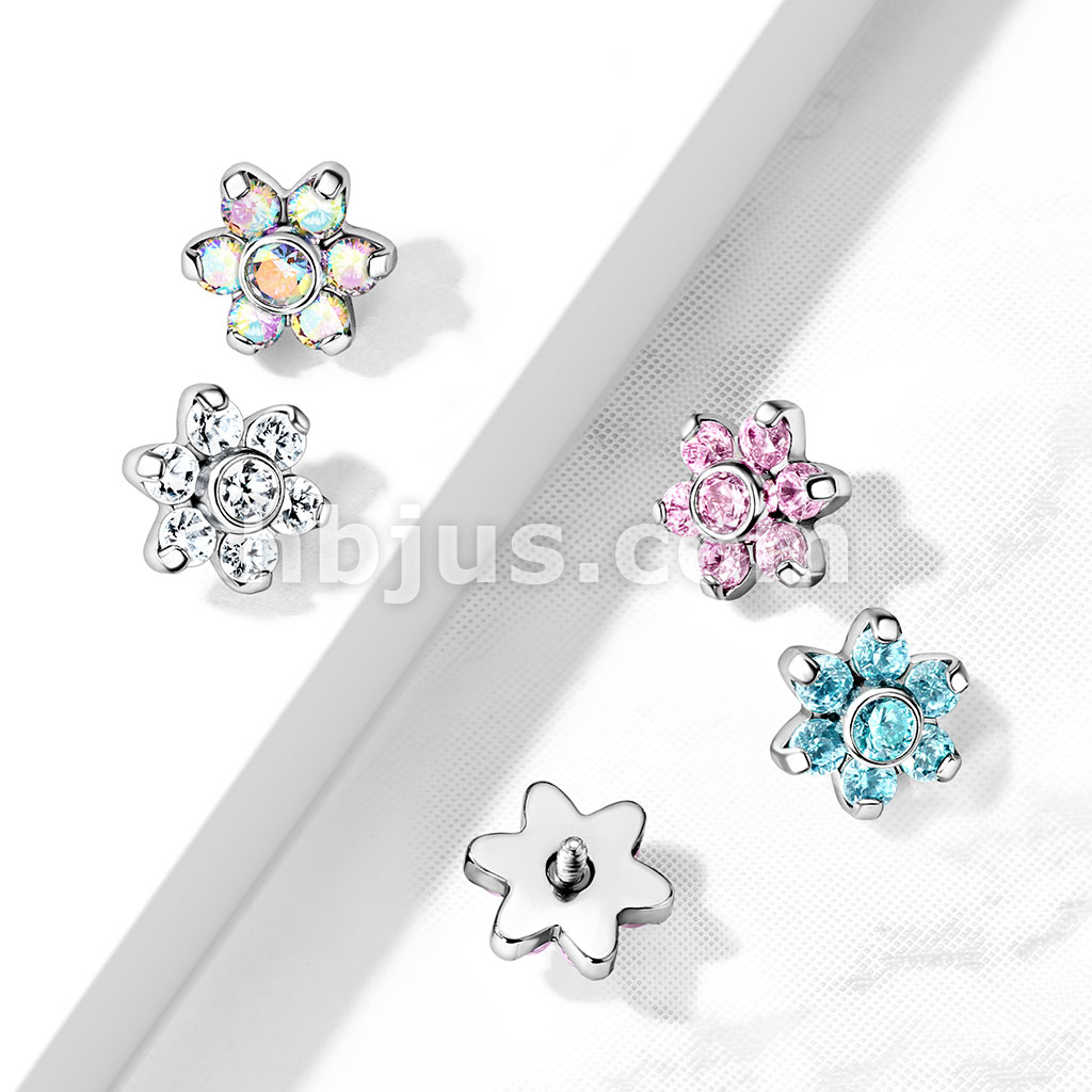 Zircon Prong Set Flower 316L Surgical Steel Internally Threaded Top Parts For Labret, Dermal and More