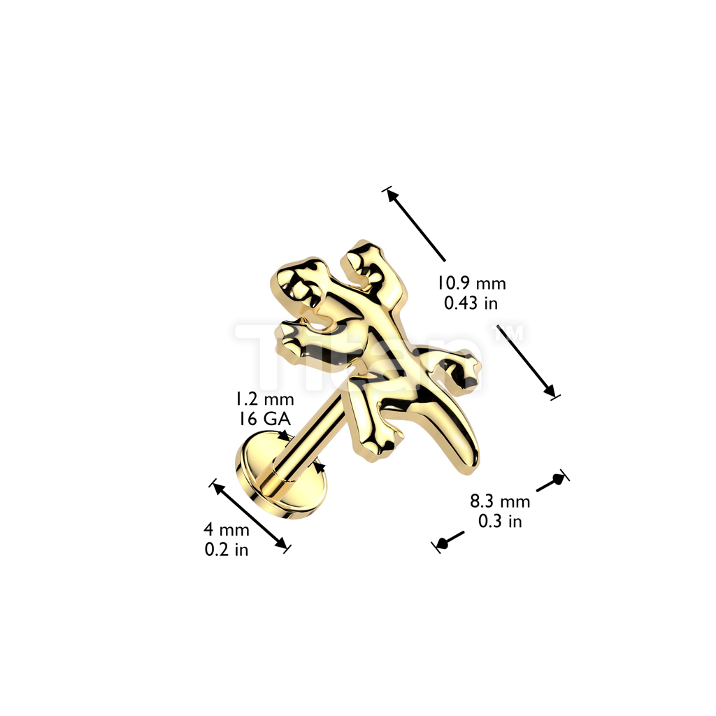 Implant Grade Titanium Internally Threaded Labret, Flat Back Stud With Gecko Top