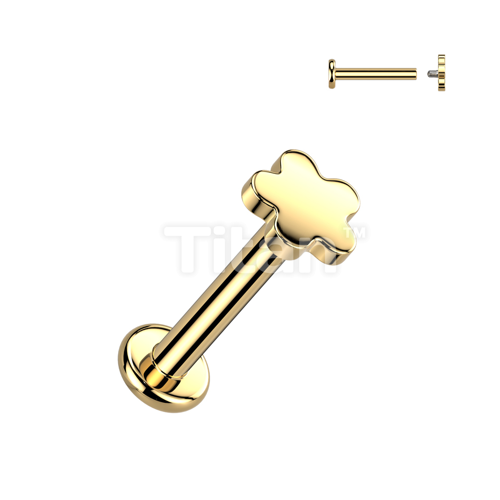 Implant Grade Titanium Internally Threaded Labret, Flat Back Stud With Flower Top