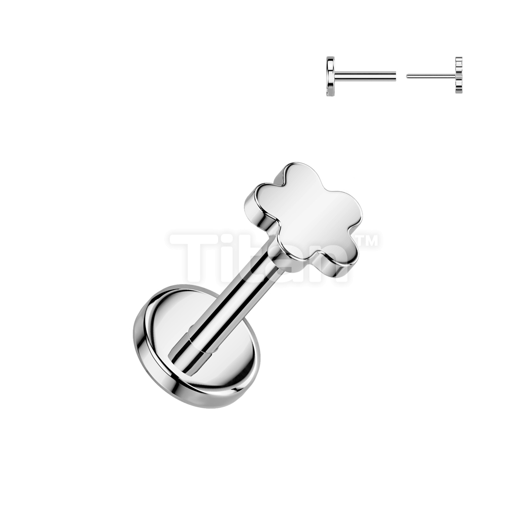 Implant Grade Titanium Threadless Push In Flat Back Earring Stud With Flower Top