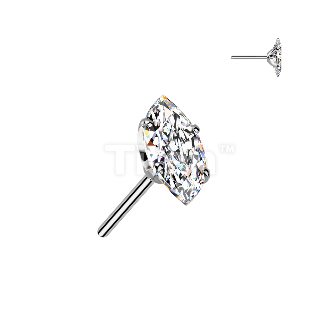 Implant Grade Titanium Threadless Push In Prong Set Marquise CZ Top