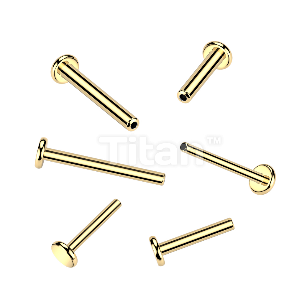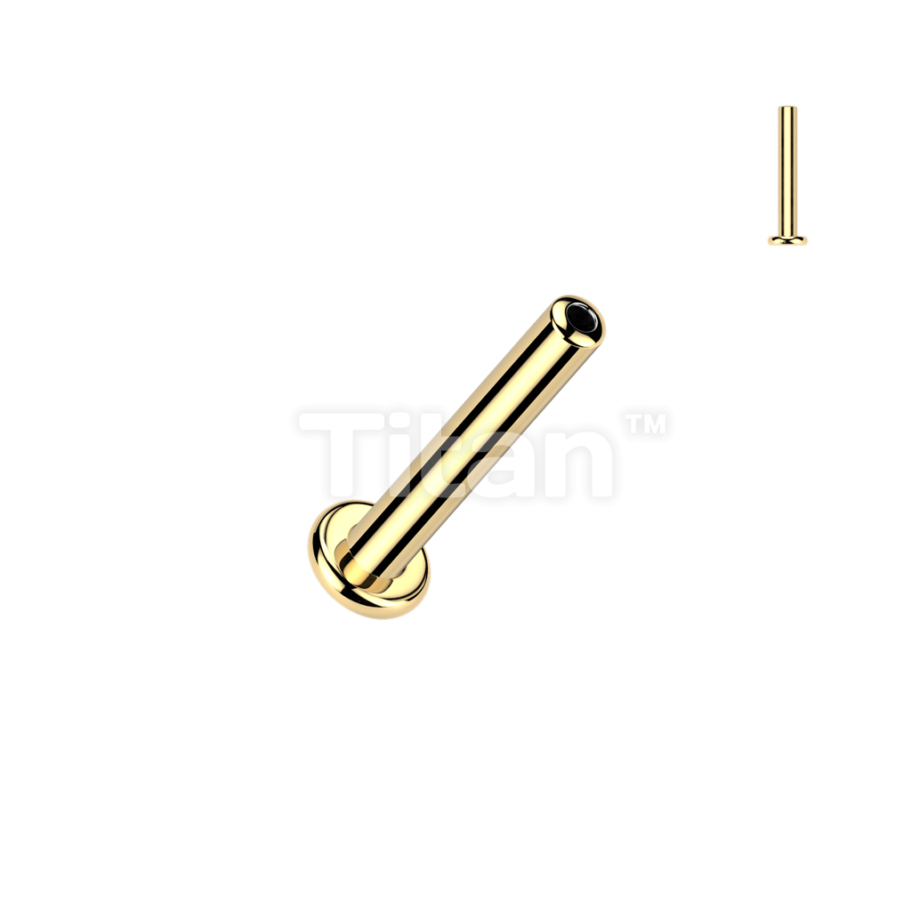 24K Gold PVD Titanium Threadless Push In 2.5mm Base Flat Back Labret Stud