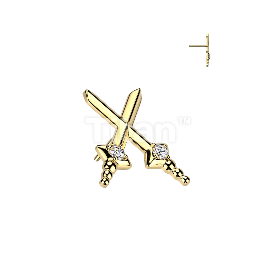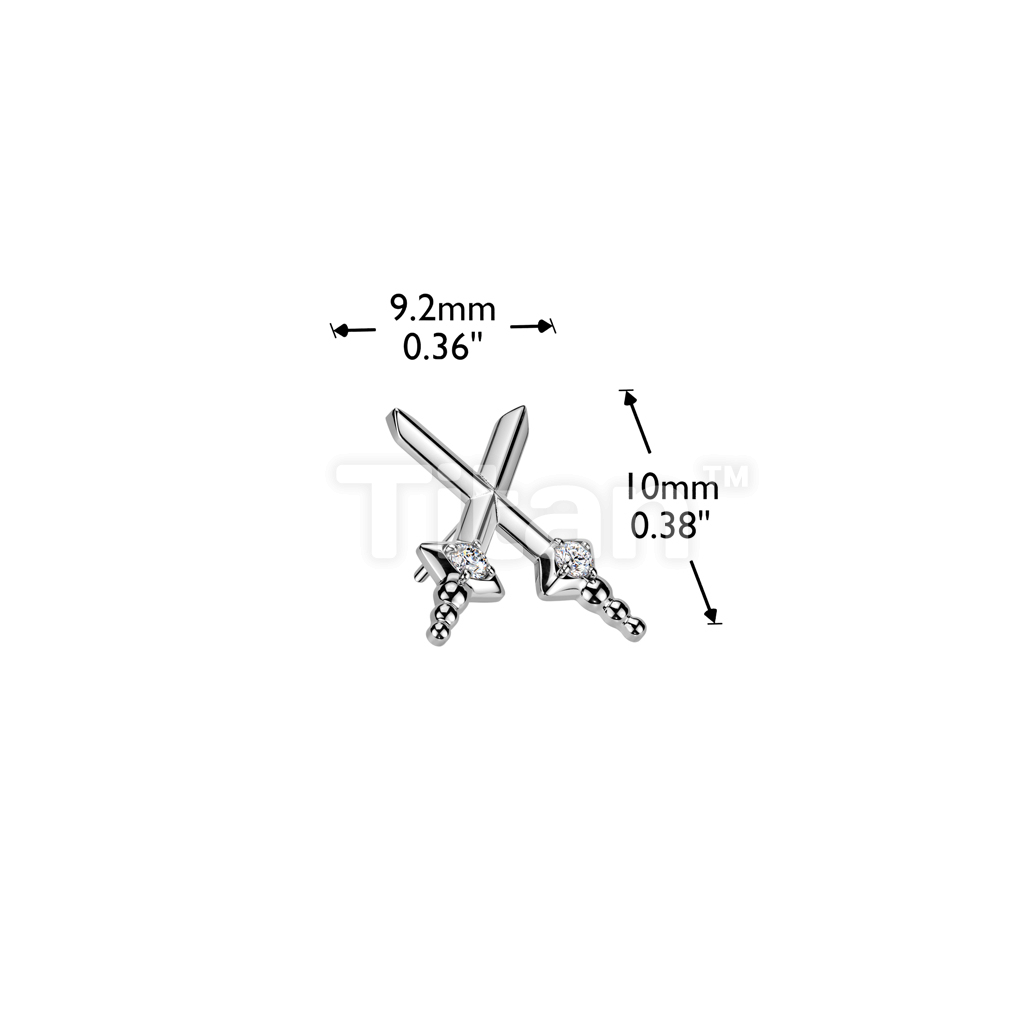 Implant Grade Titanium Threadless Push In Cross Dagger With CZ Top