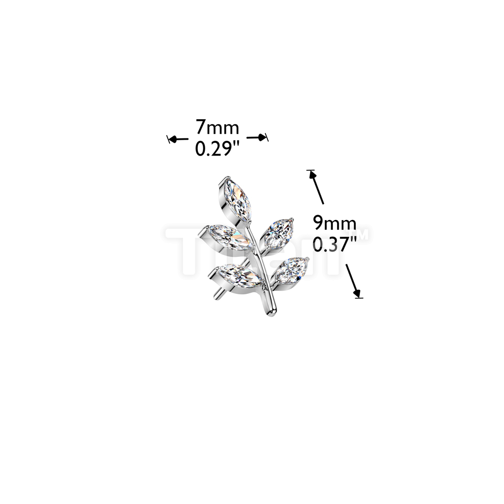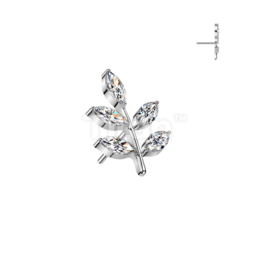 Implant Grade Titanium Threadless Push In 5 Marquise CZ Leaf Top