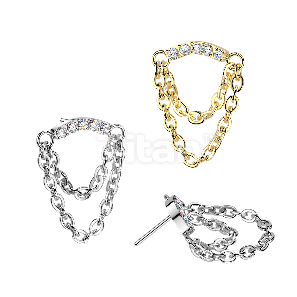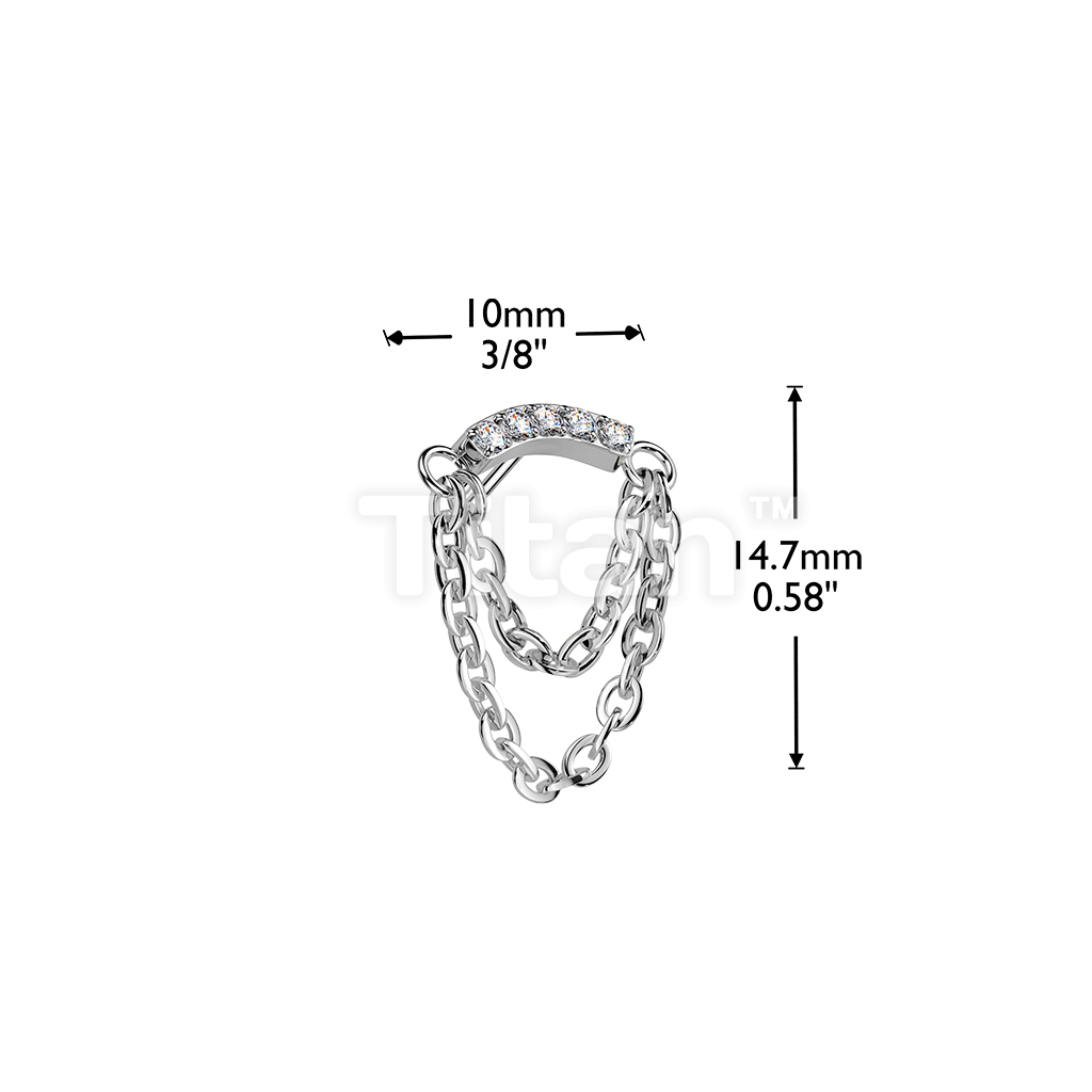 Implant Grade Titanium Threadless Push In CNC CZ Set Curve Top With Double Chain Linked Dangle