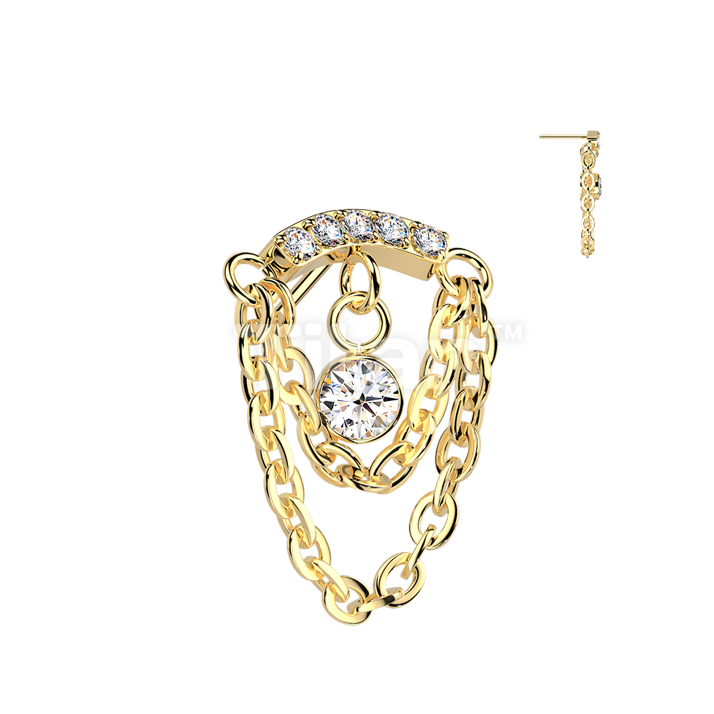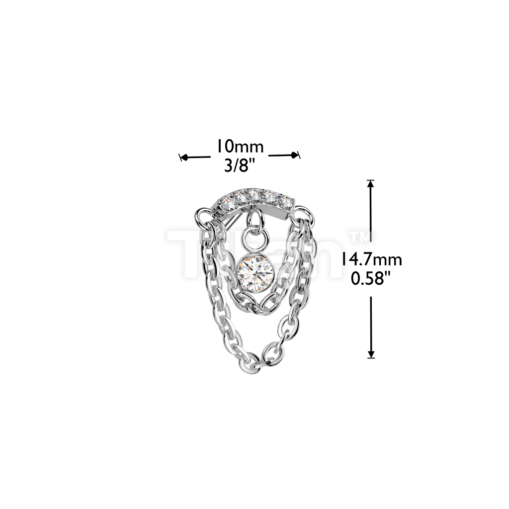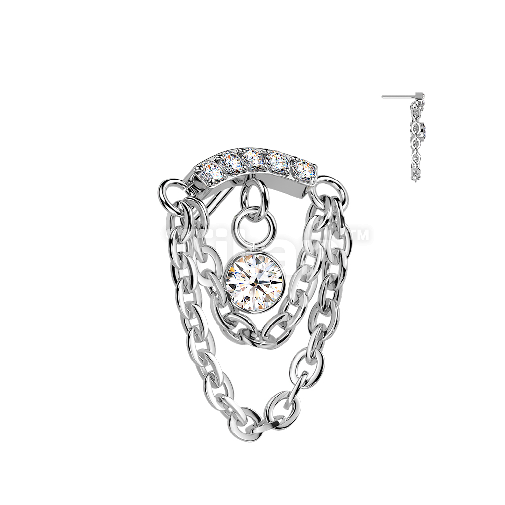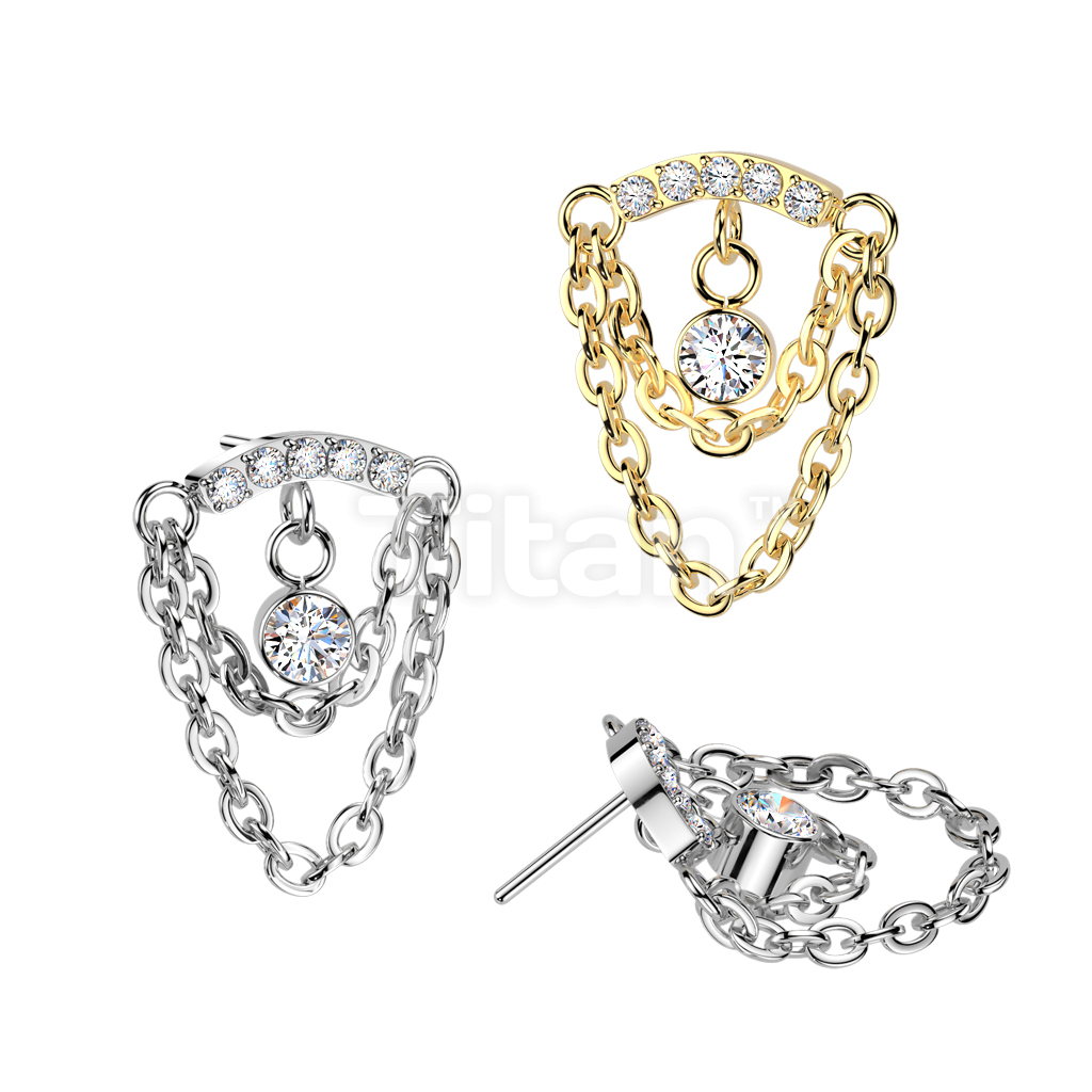 Implant Grade Titanium Threadless Push In Double Chain Linked CNC CZ Set Curve Top With CZ Dangle