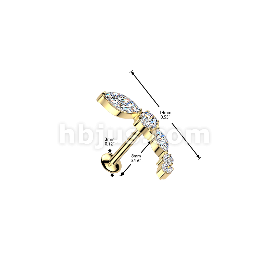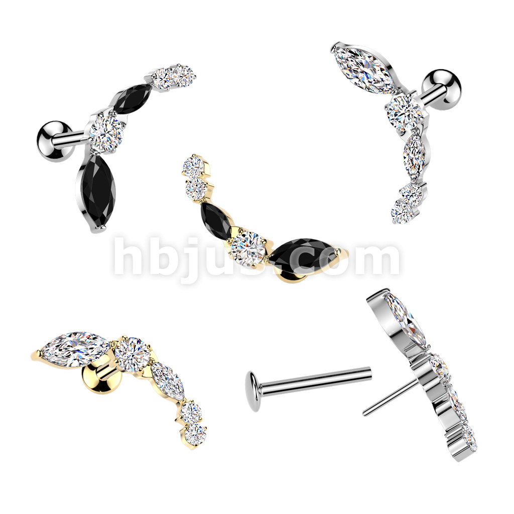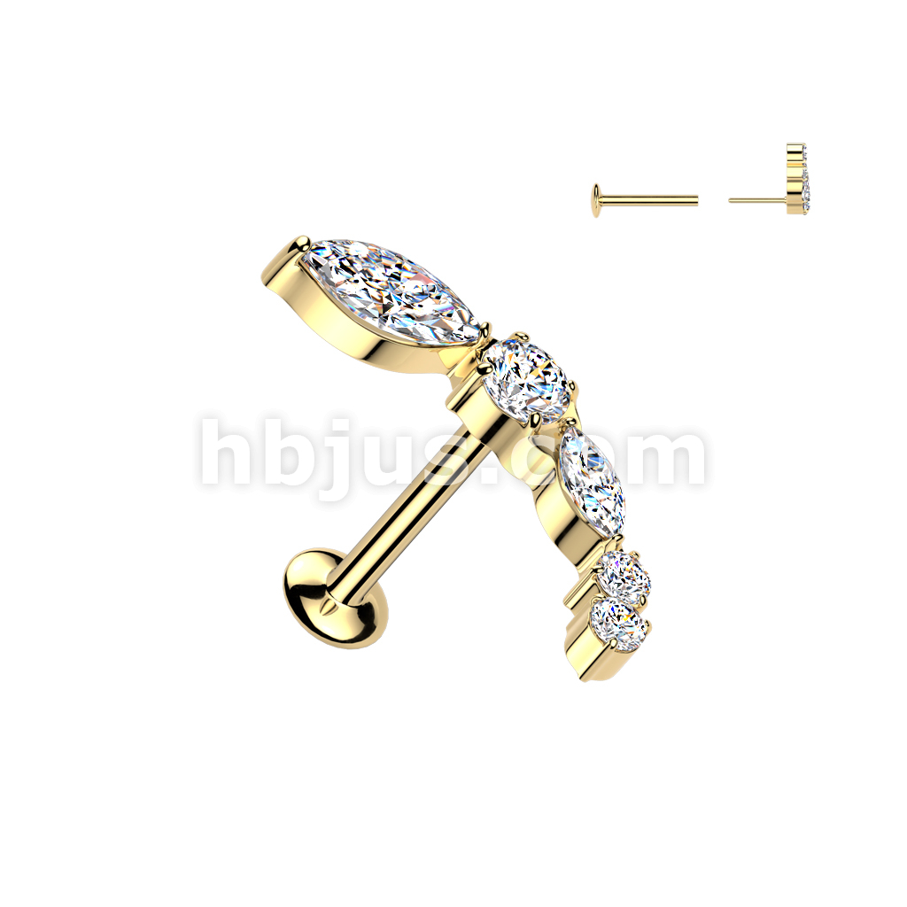 All 316L Threadless Push In Convex Stud With Different Shape CZ Top