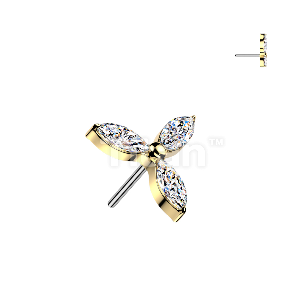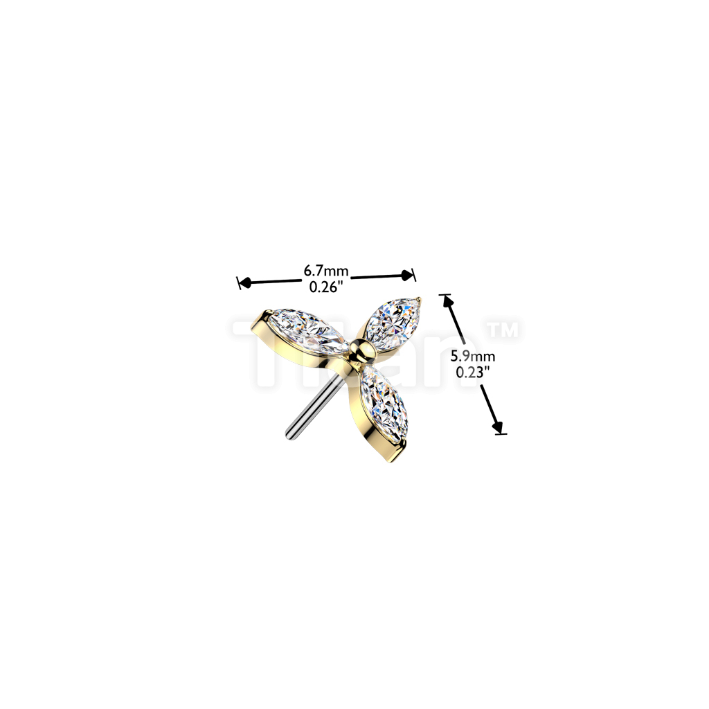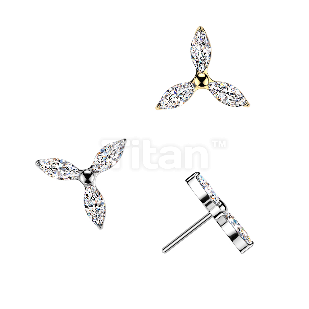 Titanium Threadless Push In 3 Marquise CZ Petals Flower Top