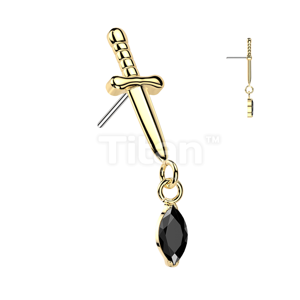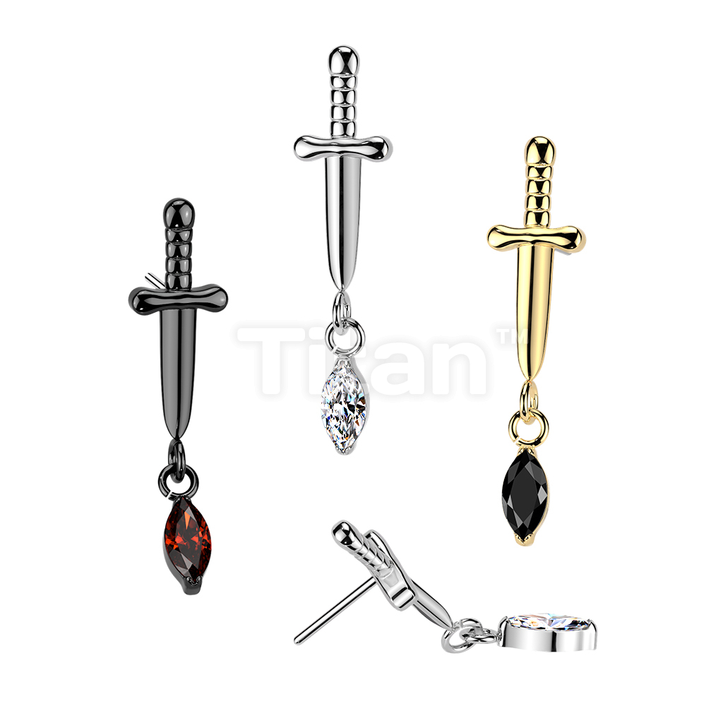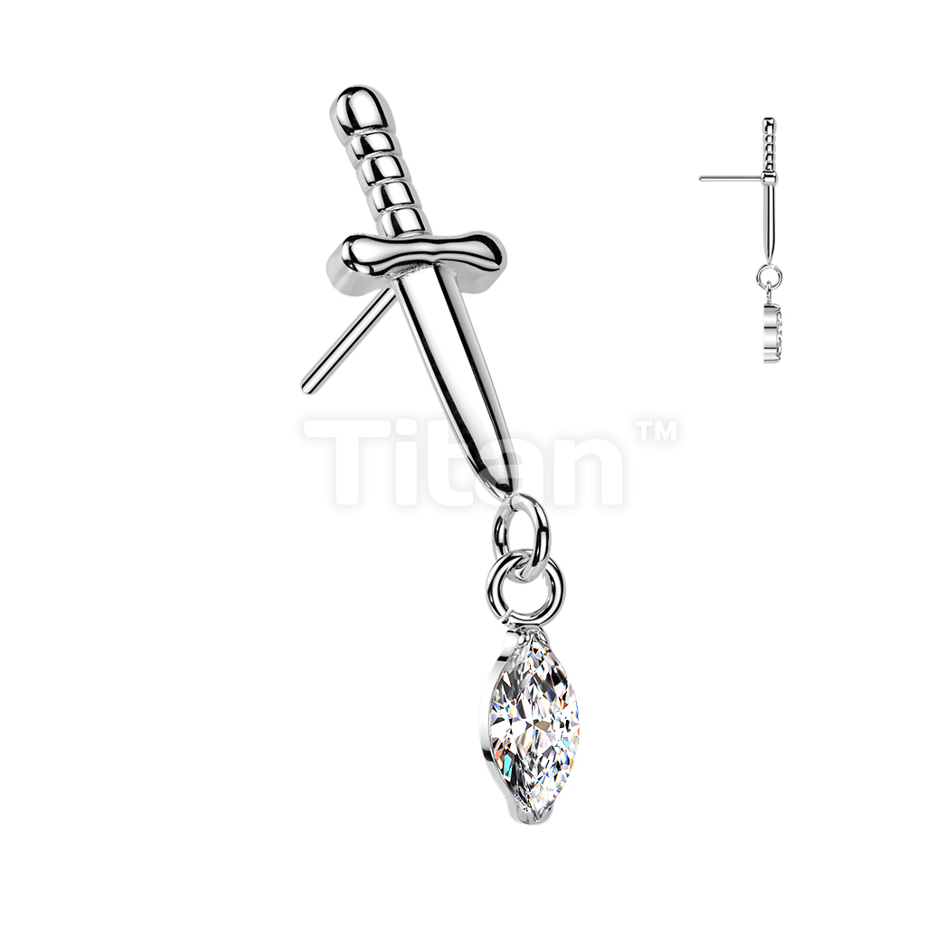 Titanium Threadless Push In Dagger Top With Marquise CZ Dangle