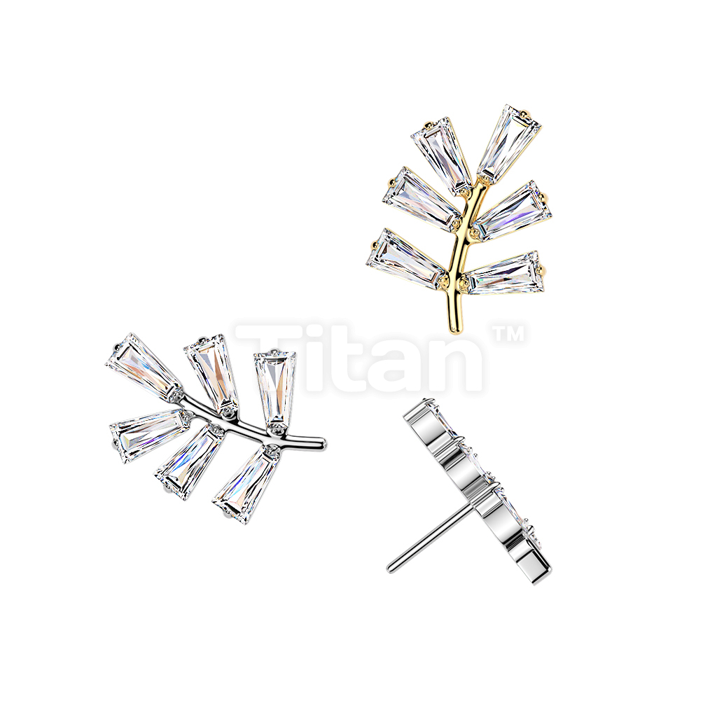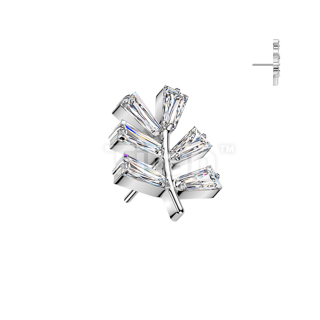 Titanium Threadless Push In Baguette CZ Leaf Top