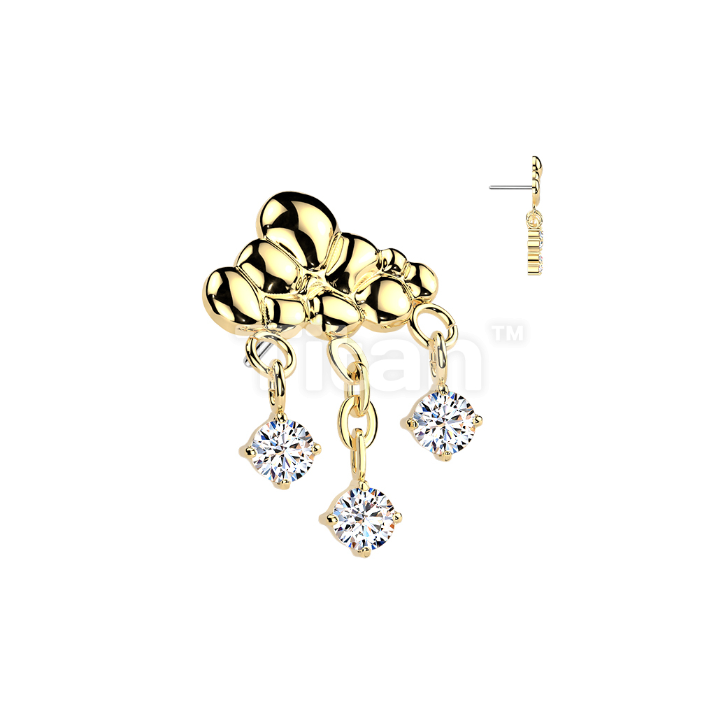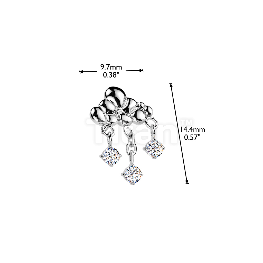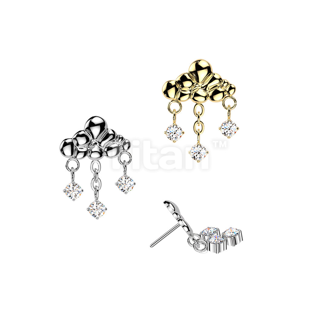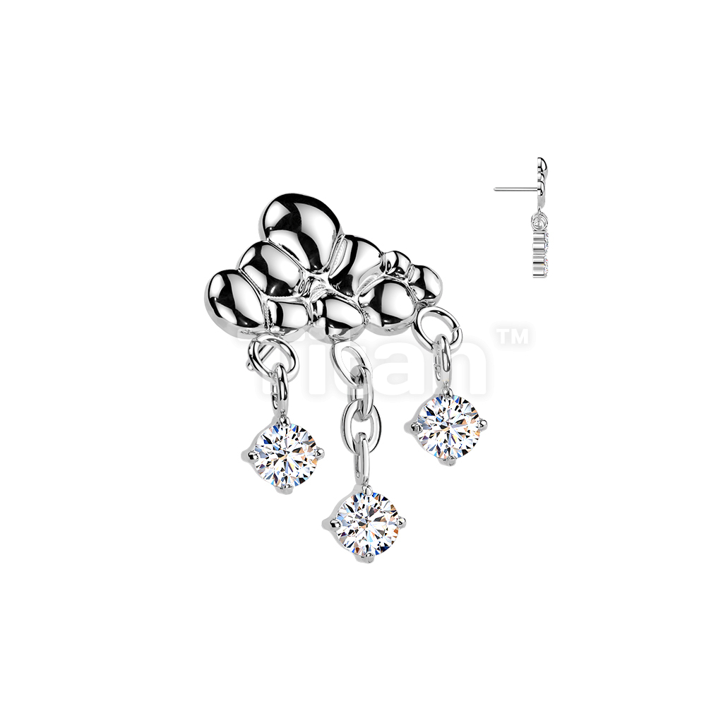 Titanium Threadless Push In Rain Cloud With 3 CZ Dangle Top