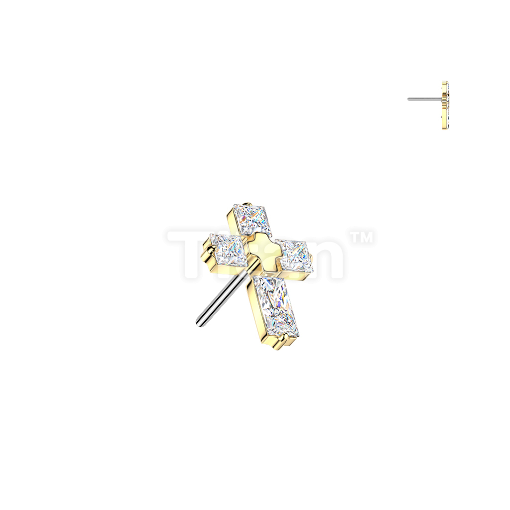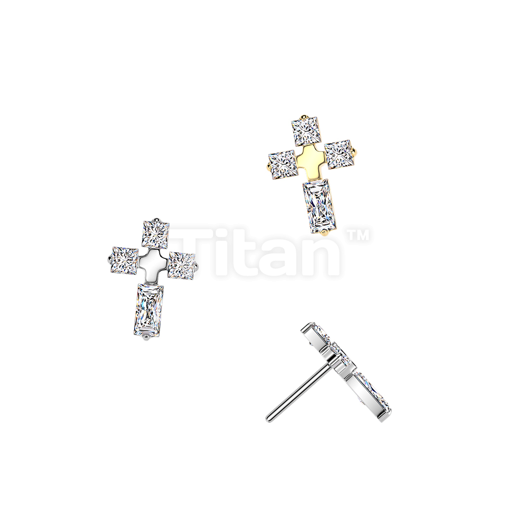 Titanium Threadless Push In 4 CZ Cross Top