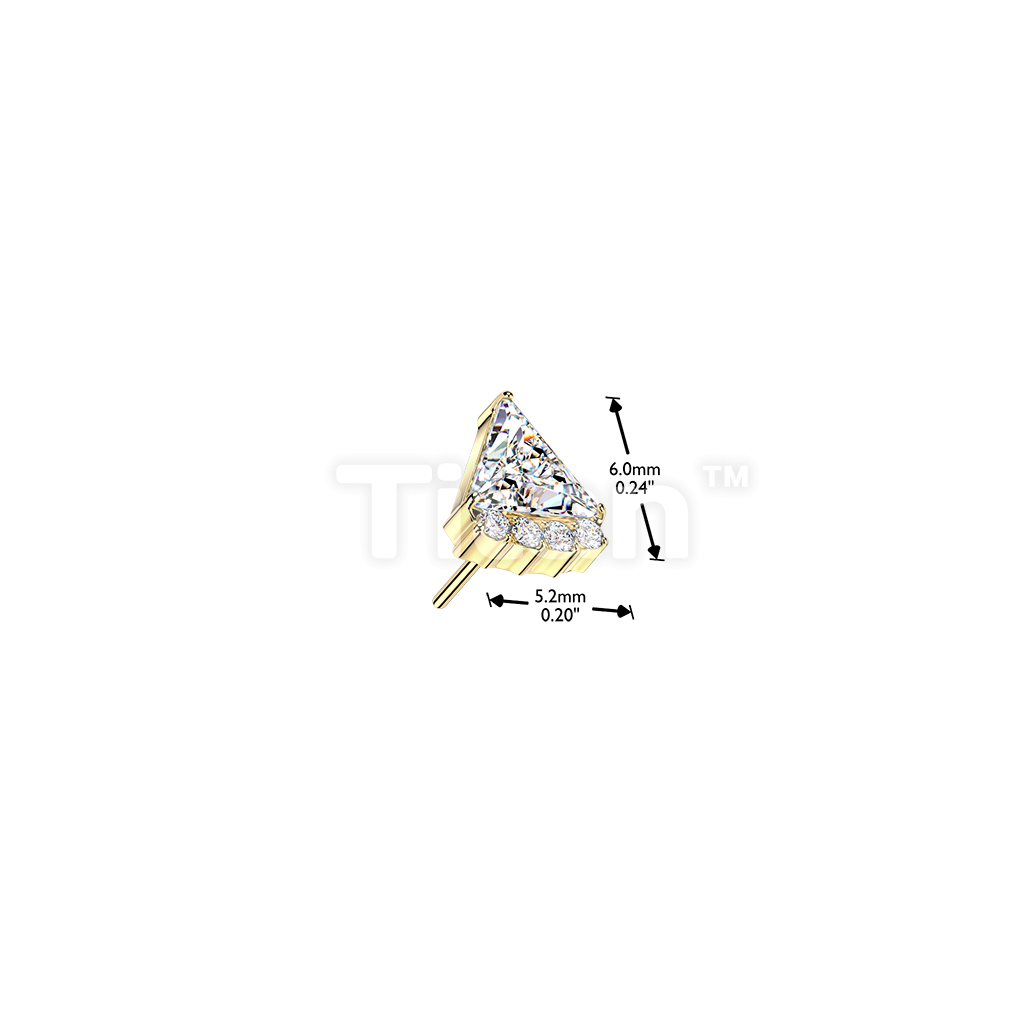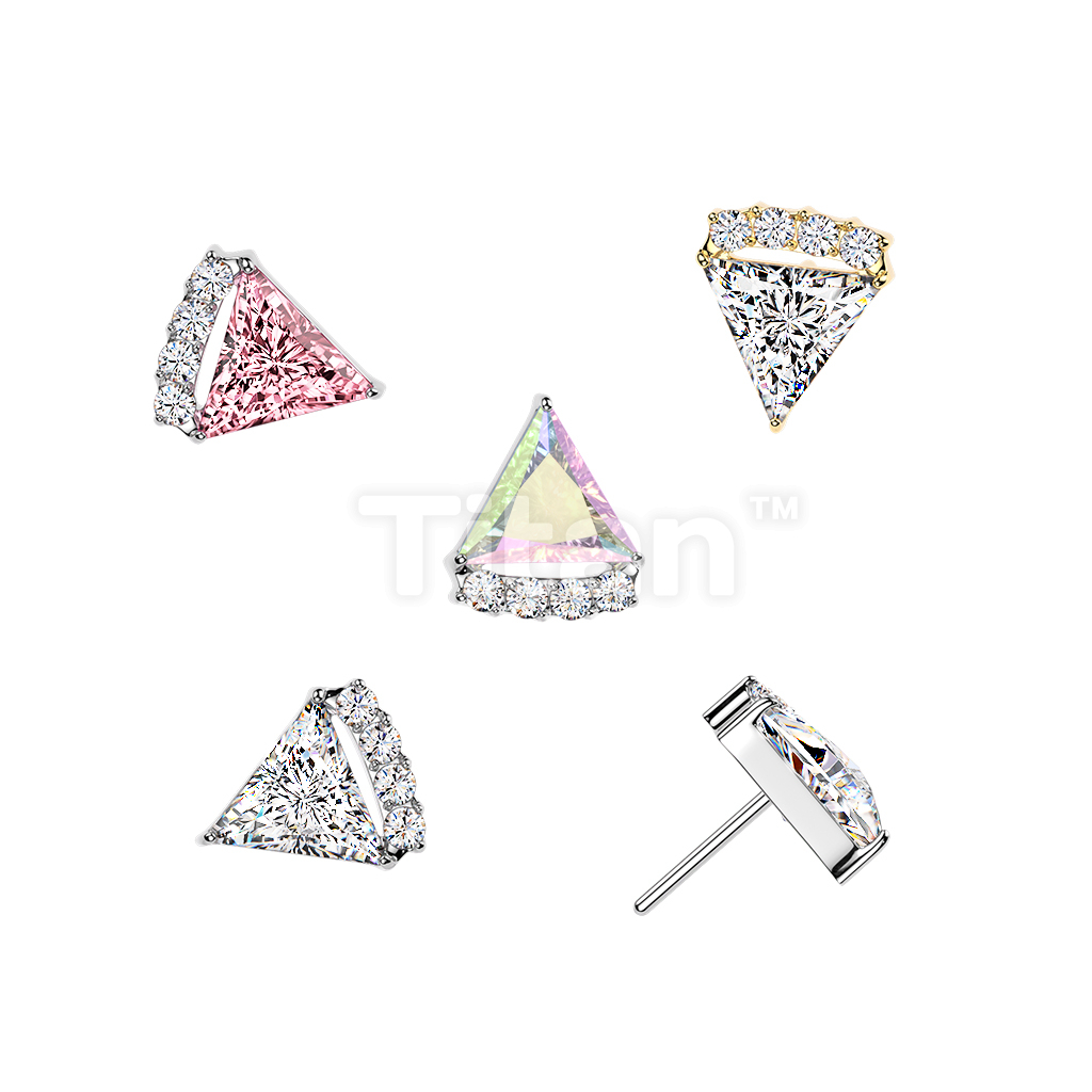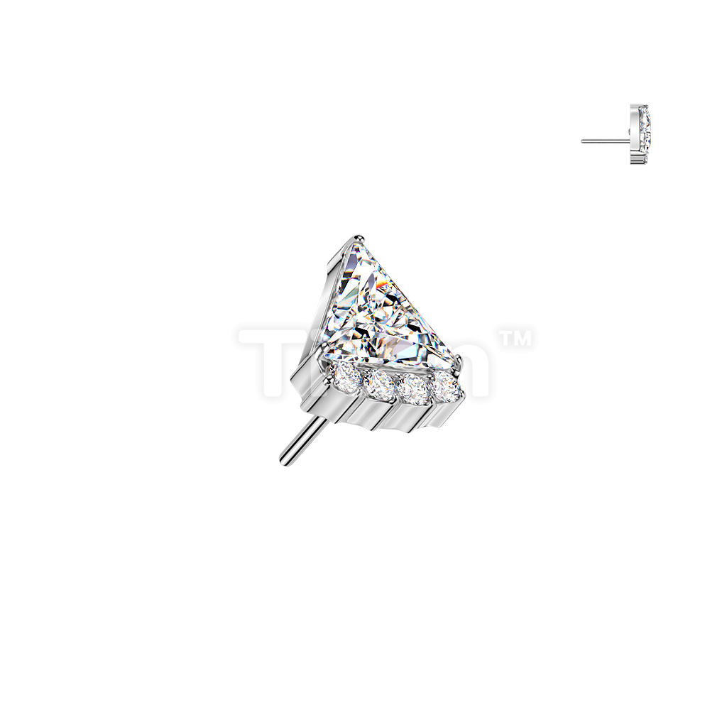 Titanium Threadless Push In Triangle CZ With Round CZ Top