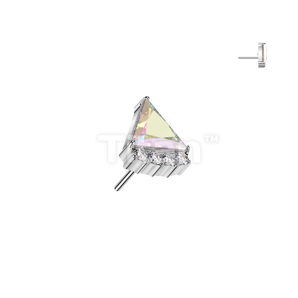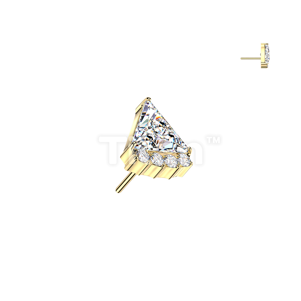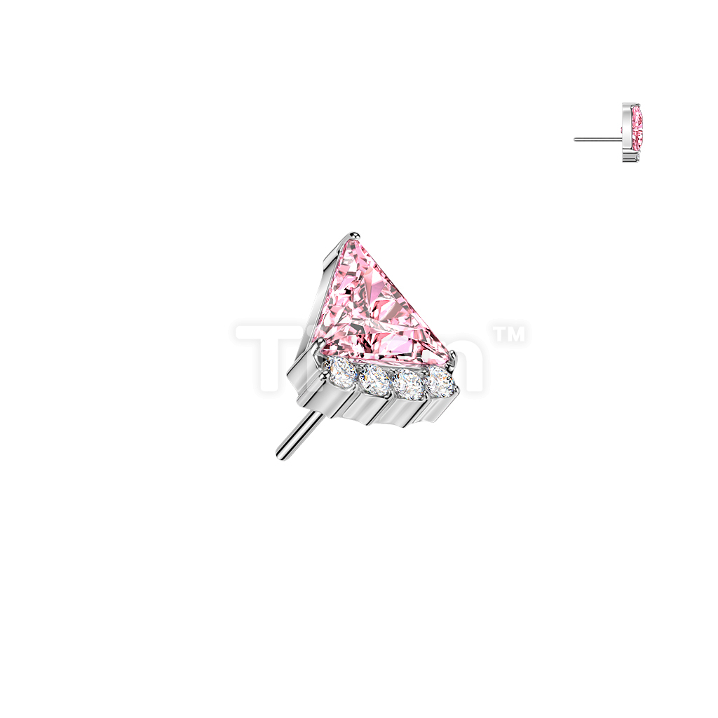 Titanium Threadless Push In Triangle CZ With Round CZ Top