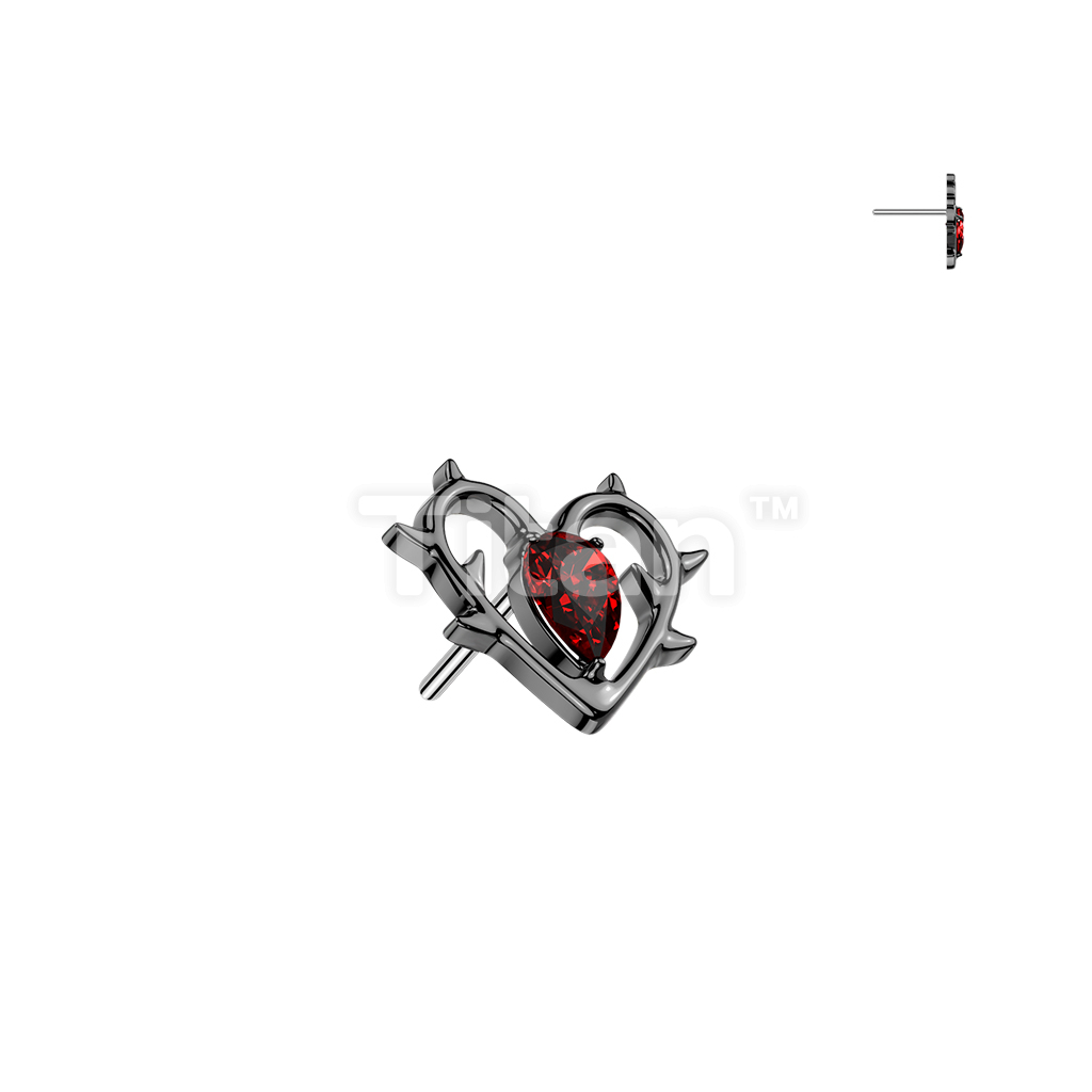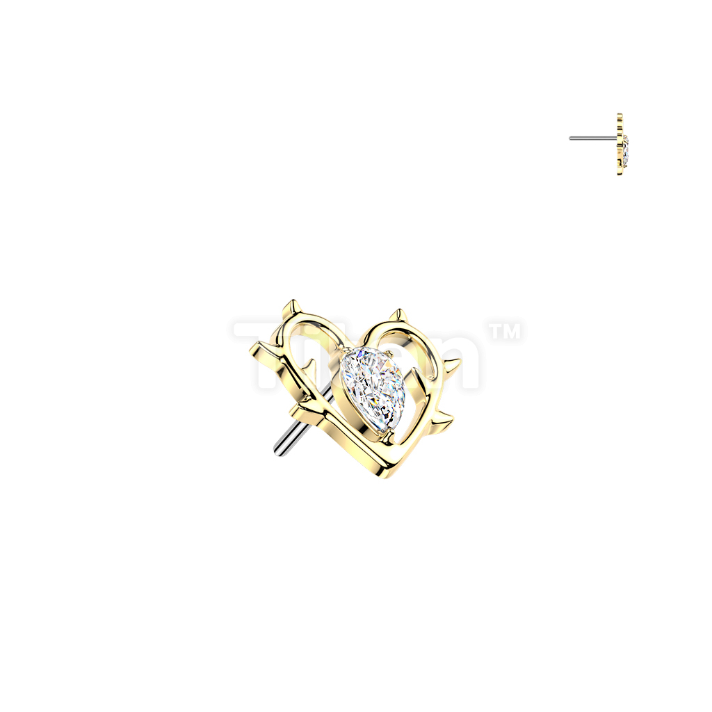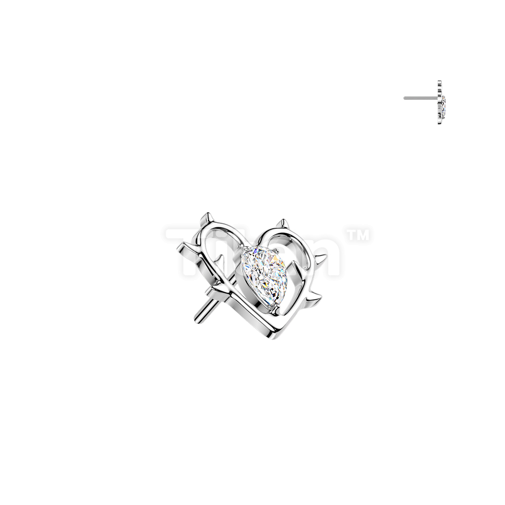 Titanium Threadless Push In Heart With Thorn and CZ Center Top