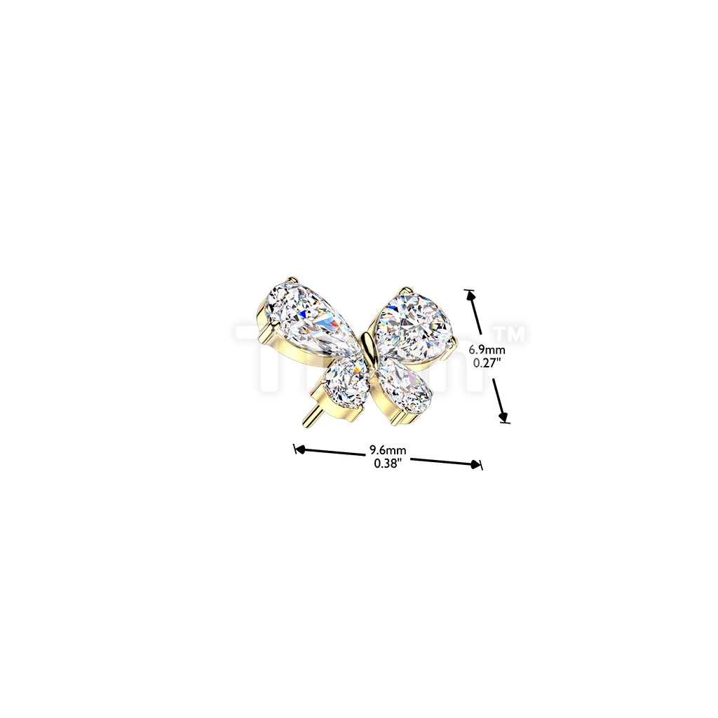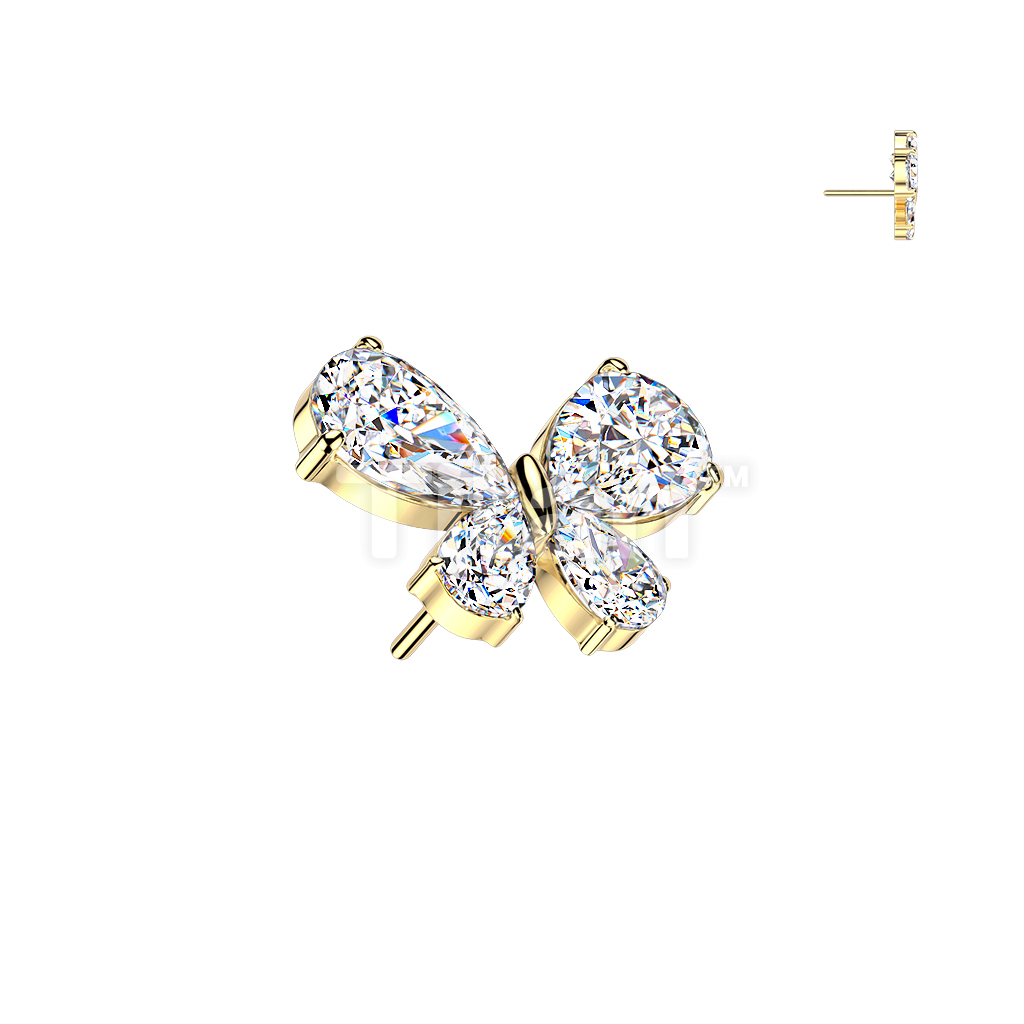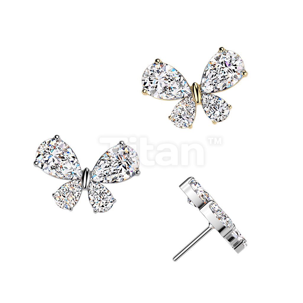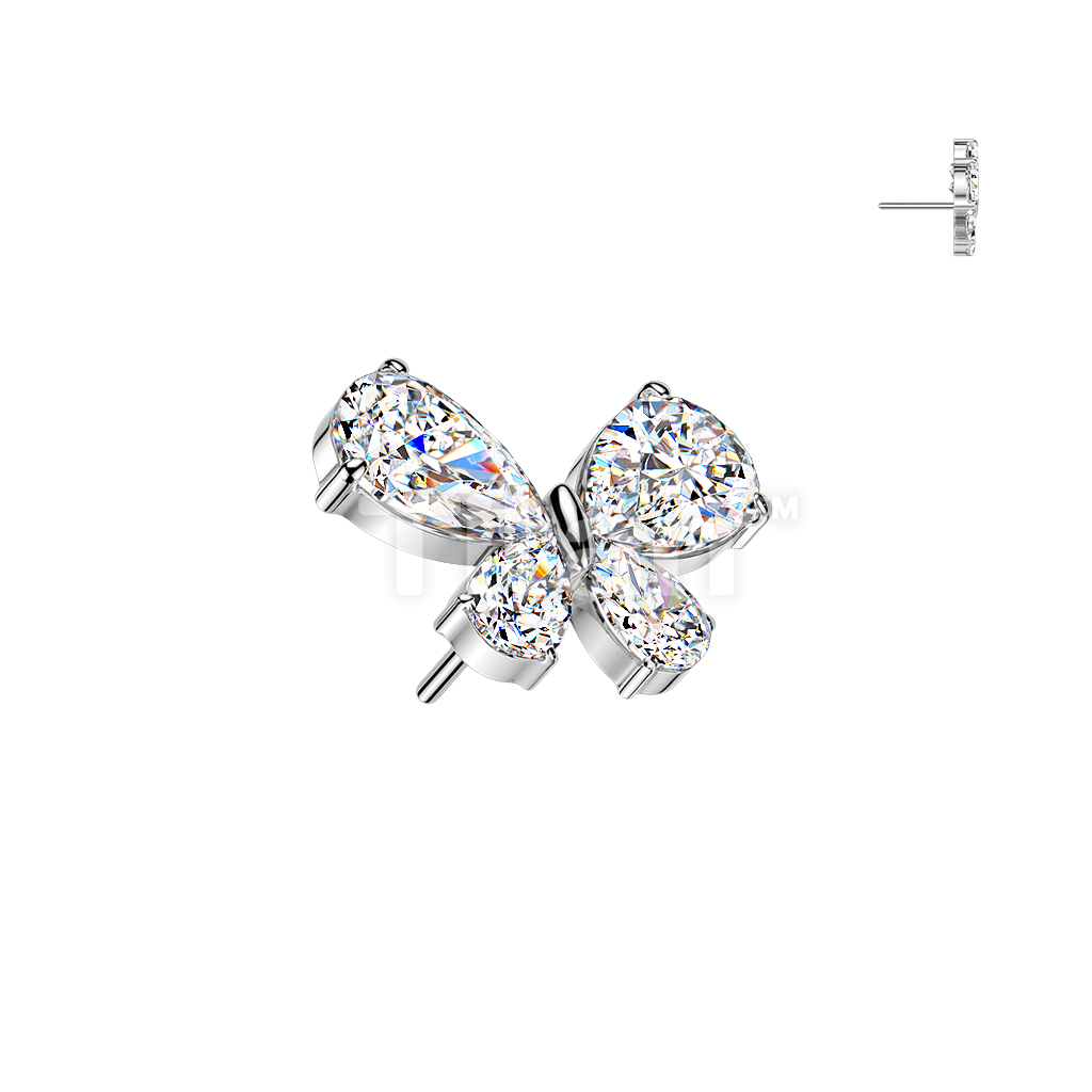 Titanium Threadless Push In Teardrop CZ Butterfly Top