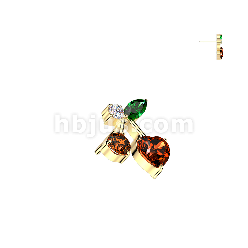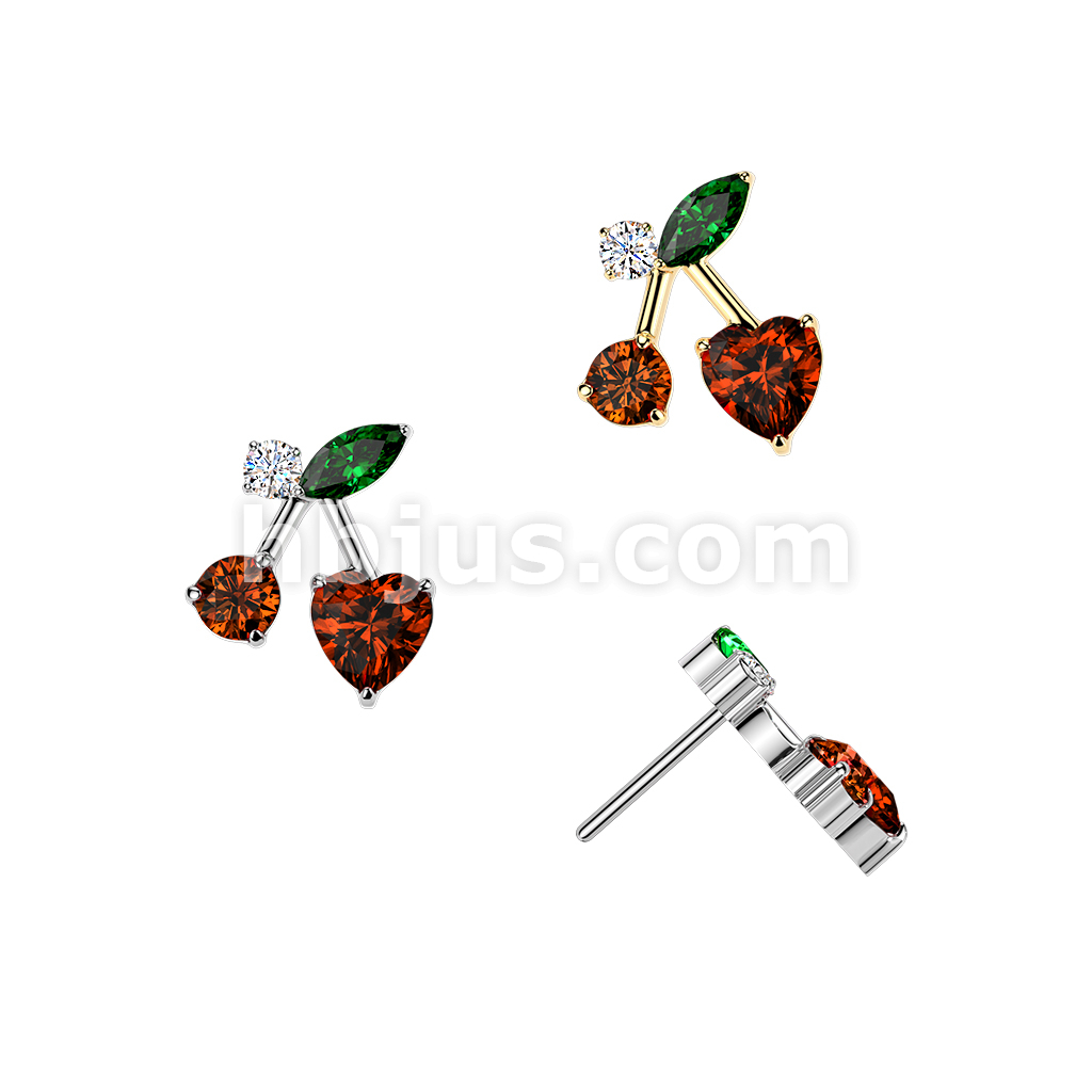 Titanium Threadless Push In CZ Cherry Top