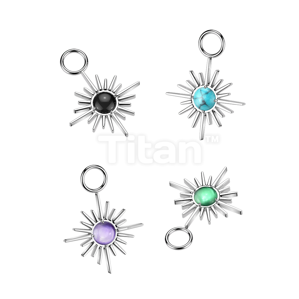Titanium Dangle Charm Starburst With Natural Stone Center for Hoops, Studs and More