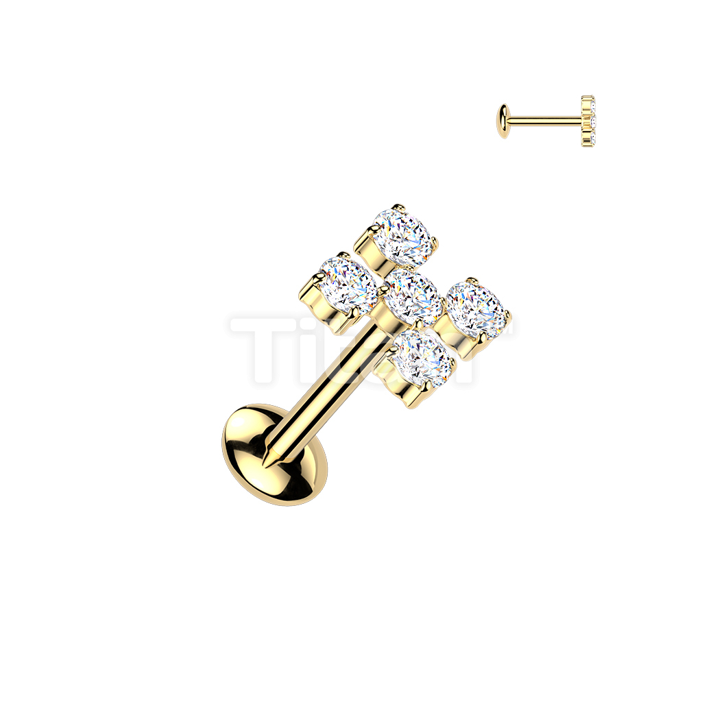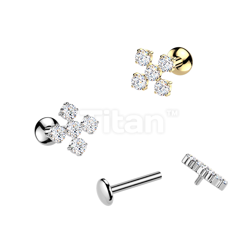 Titanium Internally Threaded 5 CZ Cross Top Labret With Convex Back