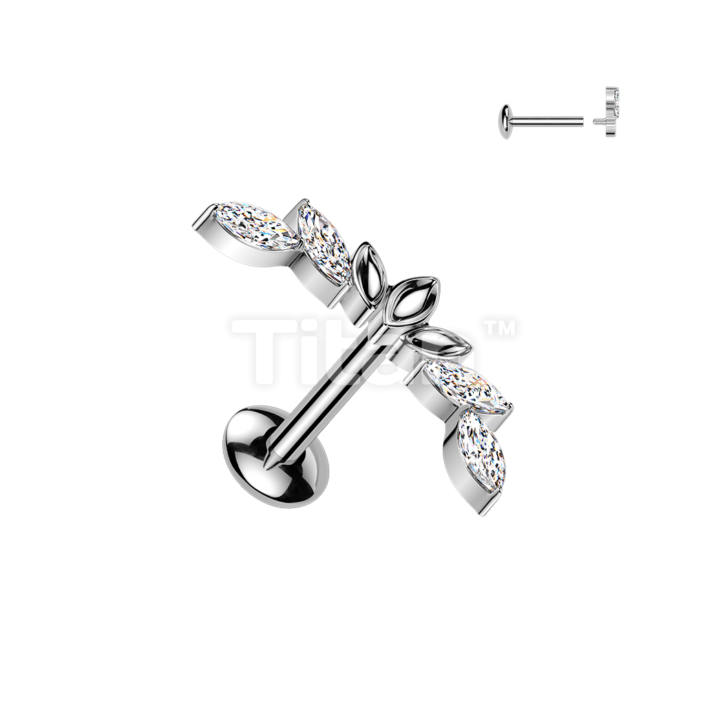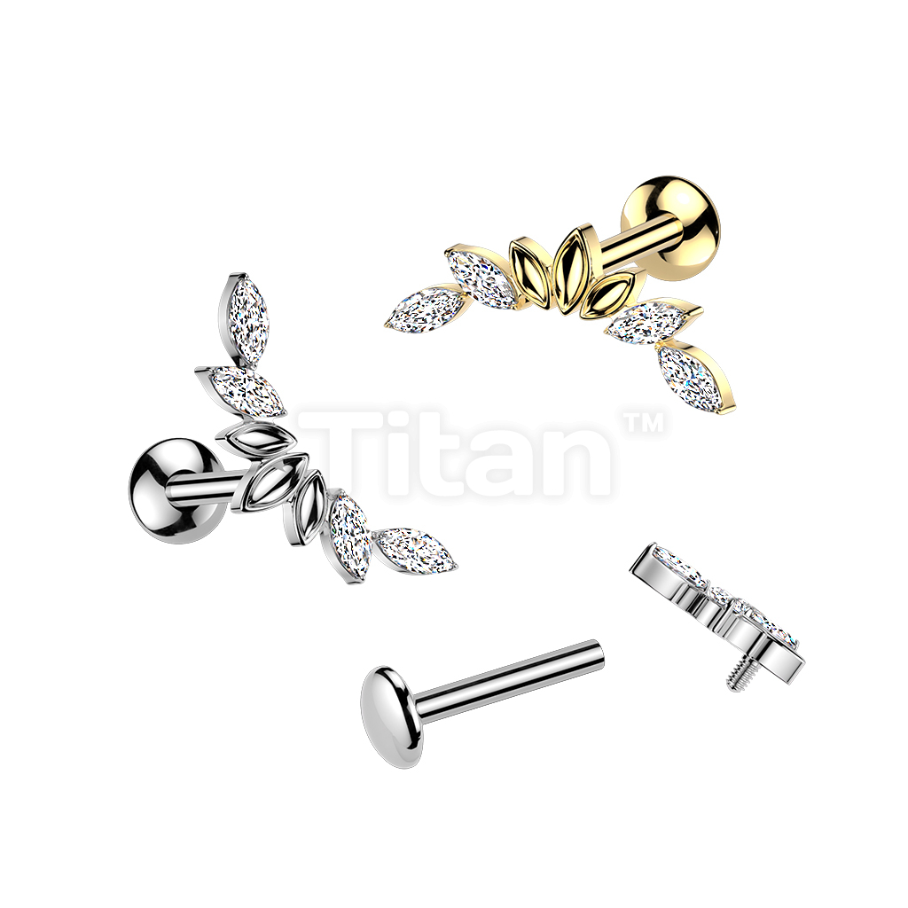 Titanium Internally Threaded Marquise CZ Wings Top Labret With Convex Back